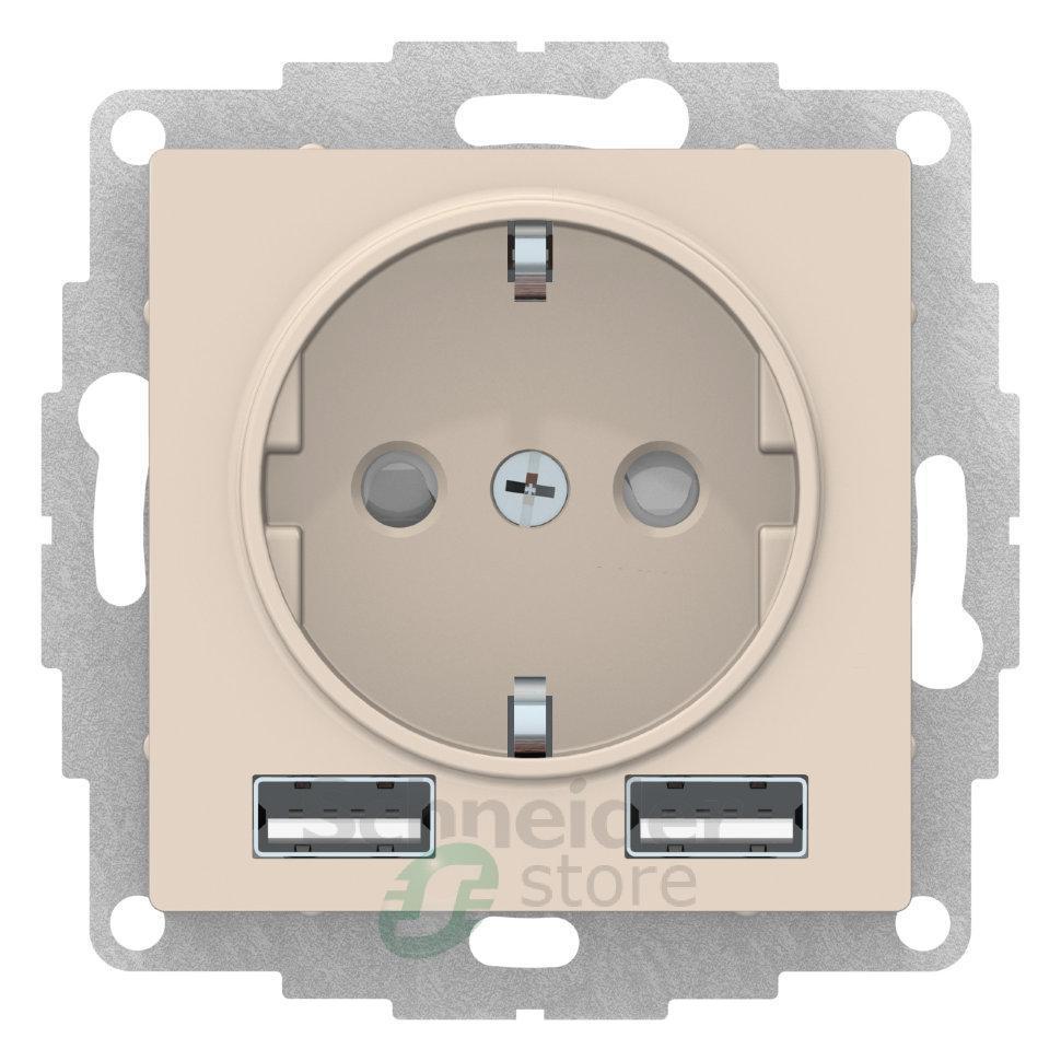 ATN000230 - ATLASDESIGN РОЗЕТКА 16А c 2 USB A+A, 5В/2,4А, 2х5В/1,2А, механизм, БЕЖЕВЫЙ