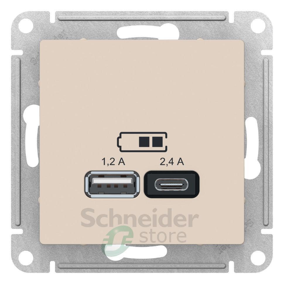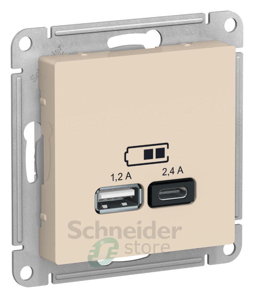 Розетка Schneider Electric AtlasDesign (цвет бежевый) двойная USB с разъемами типа A+C