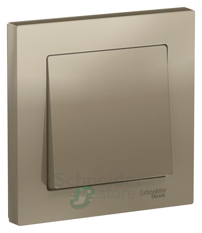 Выключатель Schneider Electric AtlasDesign (в сборе, цвет шампань) 1-клавишный подходит для сетей 250 В, на ток 10 А.