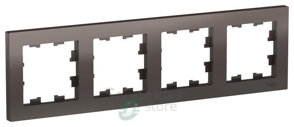 Рамка Schneider Electric AtlasDesign (цвет мокко) четырёхместная. - Устанавливается в вертикальном и горизонтальном положениях. - Лицевые детали из качественного ABS-пластика, устойчивого к царапинам и УФ-излучению. - Позволяет гармонично вписать электроустановочное изделие в интерьер помещения.