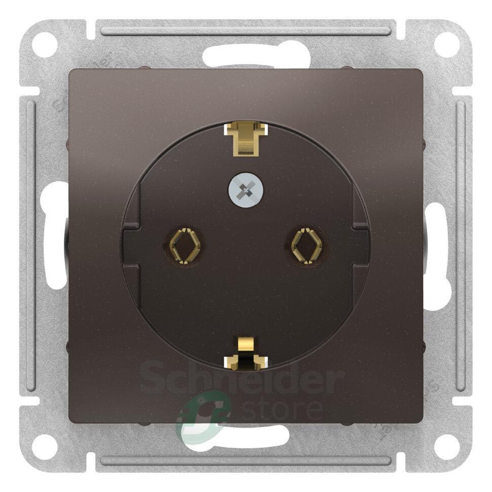 Механизм Schneider Electric AtlasDesign (цвет мокко) розетки одинарной с заземлением и без шторок подходит для сетей 250 В, на ток 16 А.