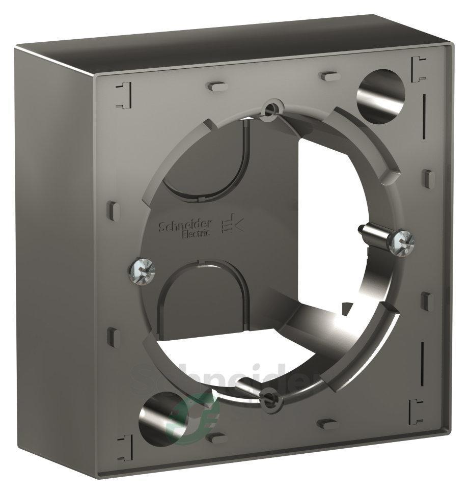 Коробка Schneider Electric AtlasDesign (цвет сталь) наружного монтажа. - Позволяет установить любую функцию скрытого монтажа на стену (как изделие открытого монтажа). - Благодаря специальным соединителям, входящим в комплект изделия, несколько коробок можно соединить между собой. - Лицевые детали из качественного ABS-пластика, устойчивого к царапинам и УФ-излучению.