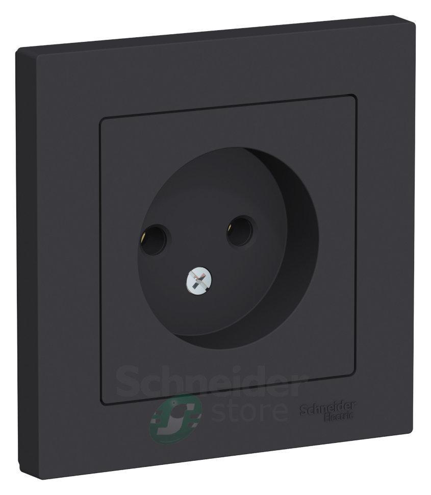 Розетка Schneider Electric AtlasDesign (в сборе, цвет карбон) одинарная без заземления и без шторок подходит для сетей 250 В, на ток 16 А.