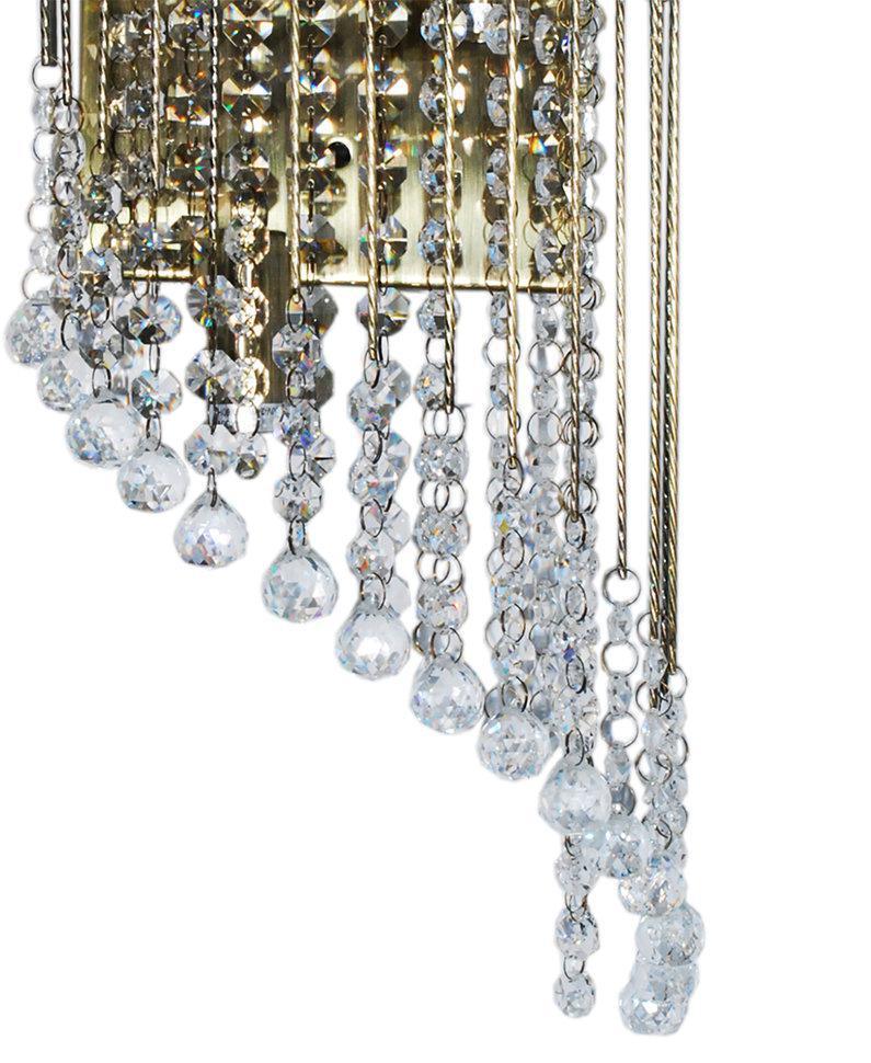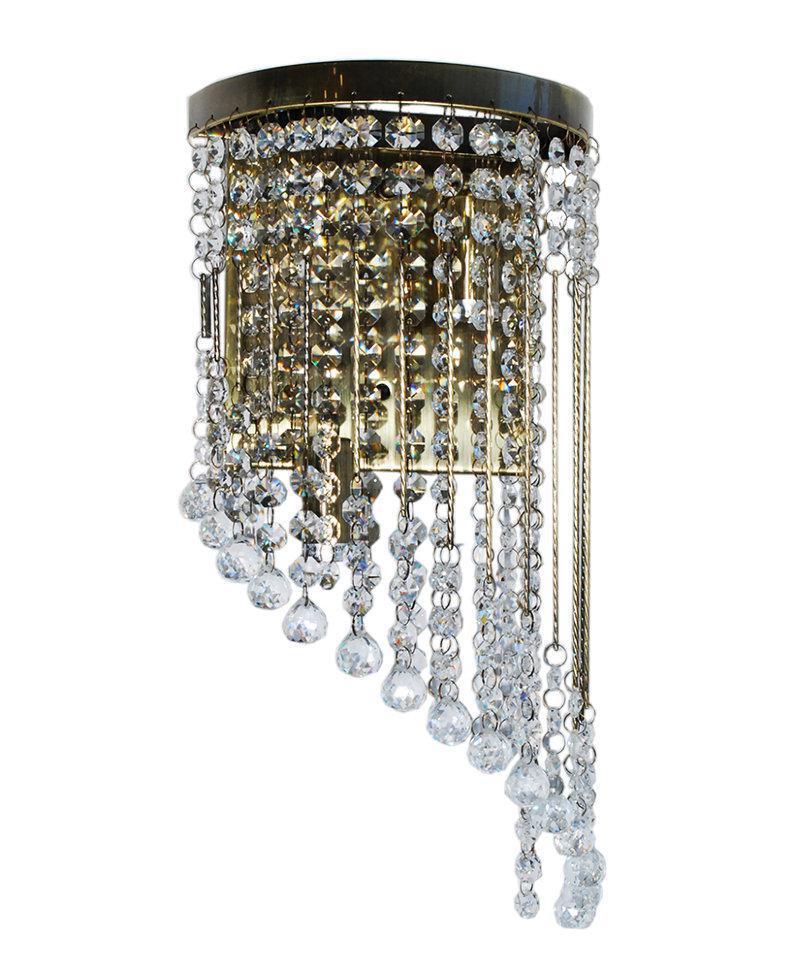 ЭЛЕГИЯ. Легкий звон дождя едва уловим в сияющих нитях хрусталя серии "ЭЛЕГИЯ". Бусы на тонких витых струнах сияющим потоком обрываются вниз, беря свое начало из элегантных металлических оснований. Радужными искрами света наполнится любой интерьер украшенный бра представленной серии.