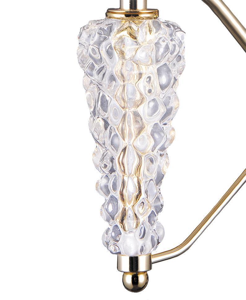ЭЛИСОН. Экзотическая оригинальность хрустальных сталактитов закована в двойные лапы геометрических рожков. Металлические бело - золотые абажуры с перфорированным рисунком венчают необычный образ модели. Самые замысловатые, богатые световые рисунки подвластны волшебнице «ЭЛИСОН».