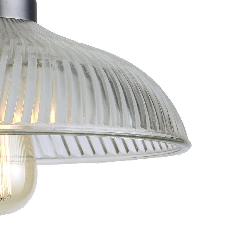 ДАНА. Стеклянная шляпка плафона выполнена с элементами рефления. Под плафоном основательно расположилась современного вида лампочка. Именно такое сочетание деталей модели делает ее ультрасовременной.