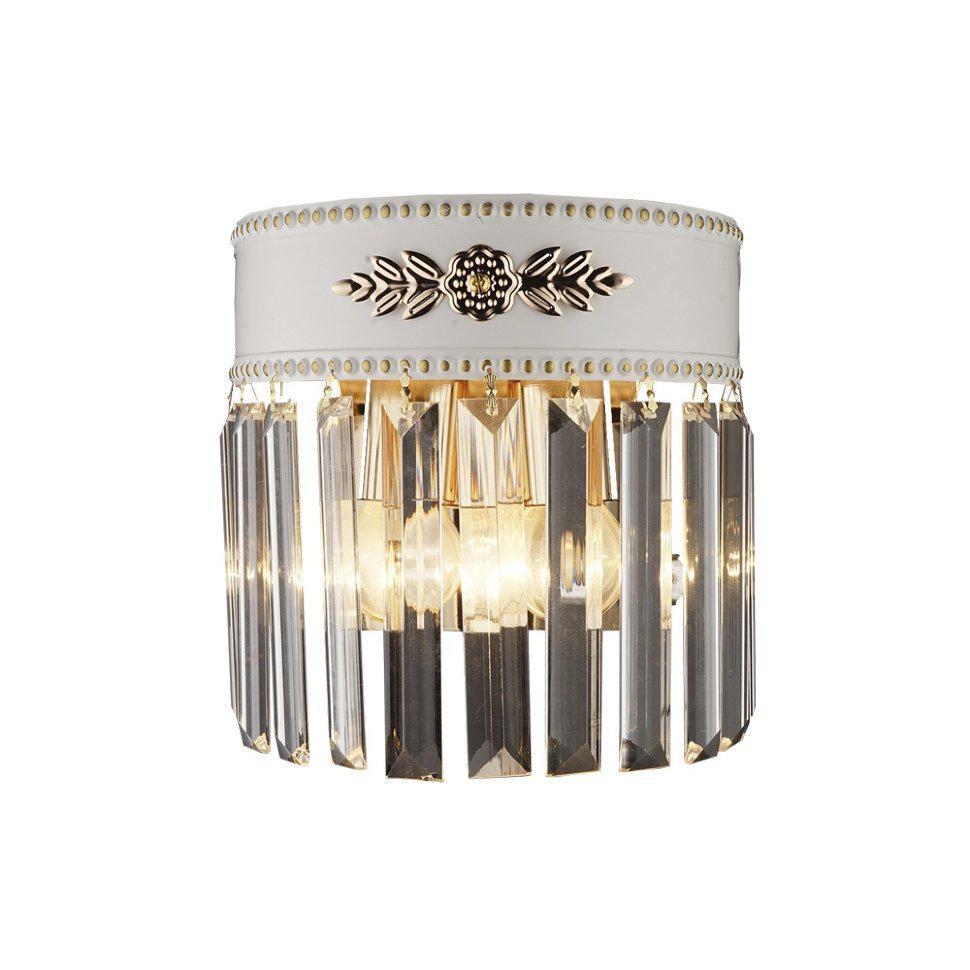 РОЗАБЕЛЛА. Стеклянные хрусталики прямоугольной формы, как прозрачный занавес прикрывают теплое свечение ламп. Оно проходит через них разнообразными оттенками, придавая визуальной глубины. А белое основание украшено золотым цветочным рисунком. Такая модель смотрится очень нежно в любом интерьере.