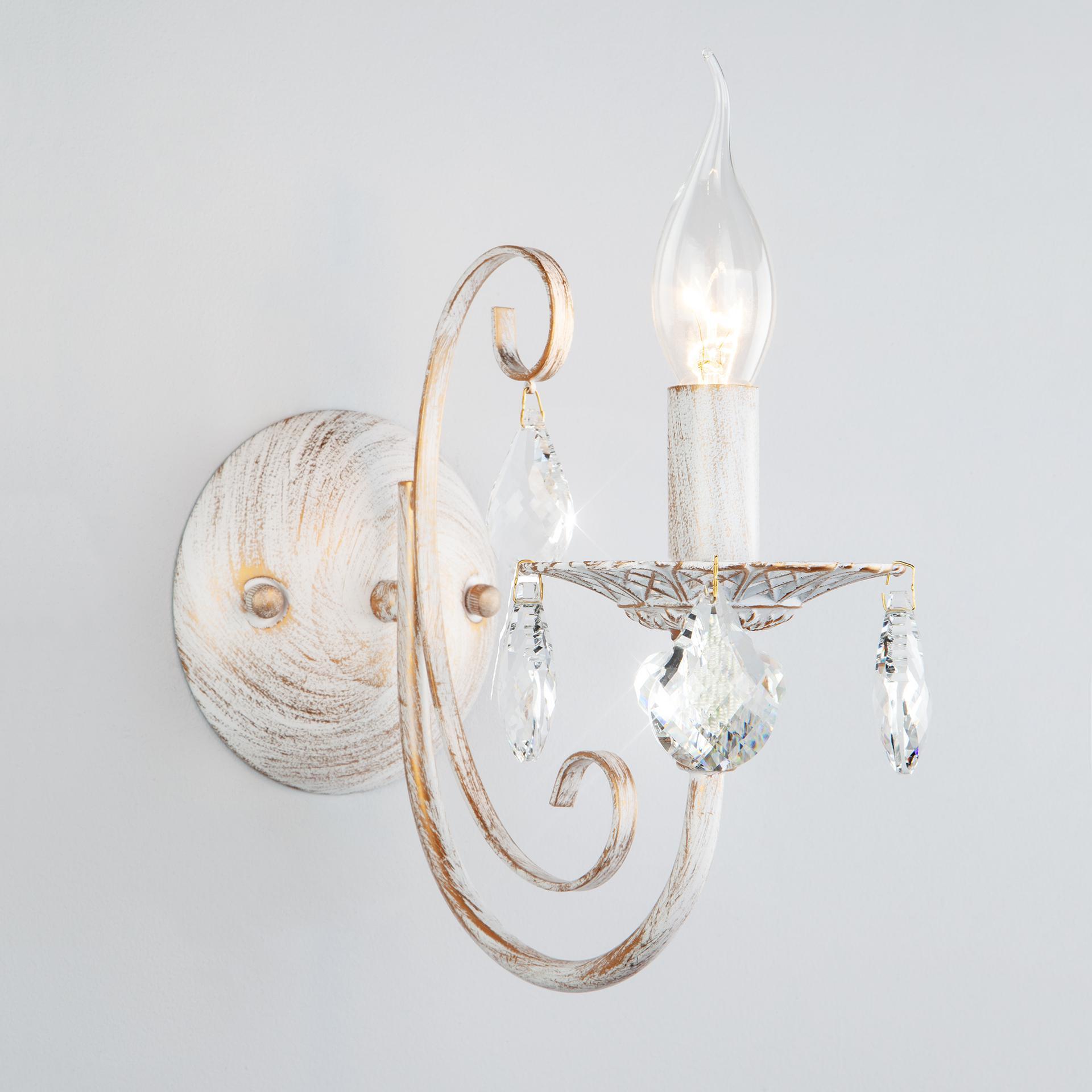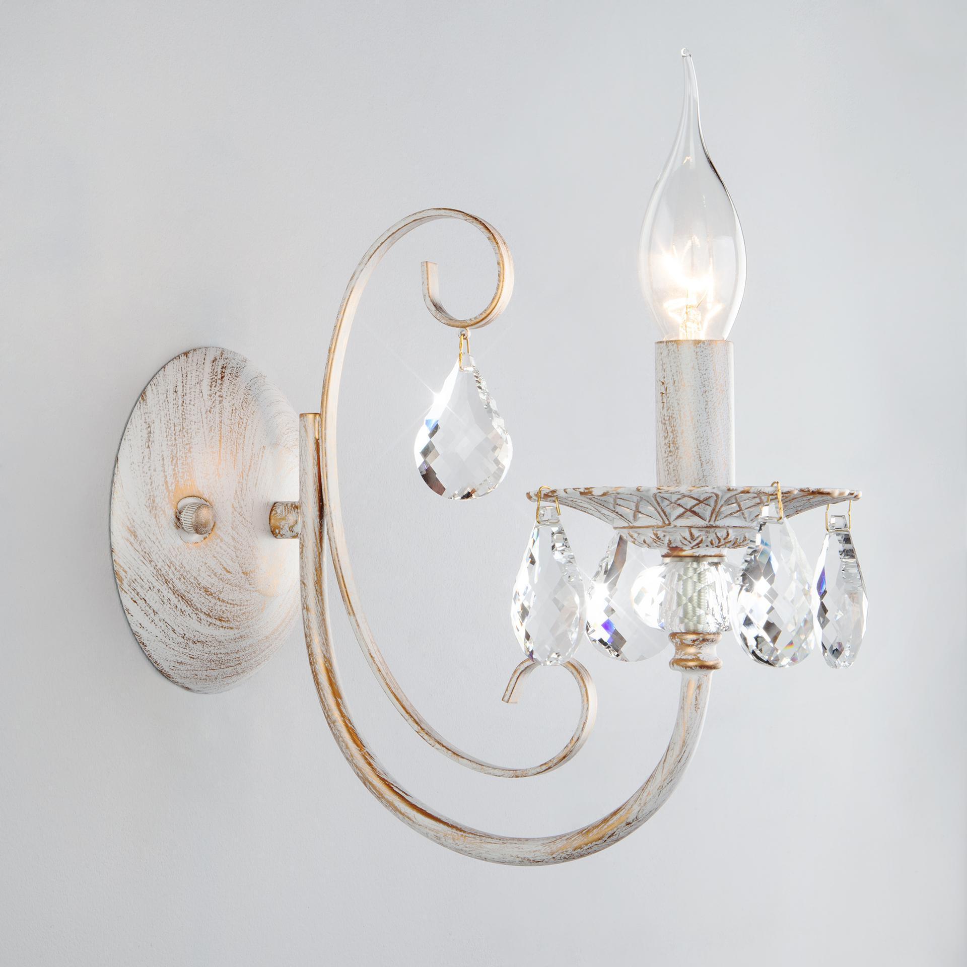 Бра с хрусталем 3305/1 белый с золотом / прозрачный хрусталь станет ярким световым акцентом в классических интерьерах и создаст качественное освещение на площади 3 м². Эффектный светильник украшен хрустальными подвесками, которые искрятся в лучах света, наполняя помещение выразительным блеском. В качестве источника света используются сменные лампы типа с цоколем E14. Патрон рассчитан на максимальную мощность ламп накаливания 60 Вт. Корпус светильника выполнен из высококачественного и прочного металла с надежным покрытием. Бра легко монтируется при помощи крепежной планки, которая обеспечивает надежную фиксацию светильника на стене. Классическое бра с изящными формами гармонично сочетается с хрустальными люстрами и станет отличным завершением композиции вашей гостиной или спальни. В интернет-магазине Минимир вы можете купить настенный светильник с хрусталем с доставкой по Москве, Санкт-Петербургу и России.