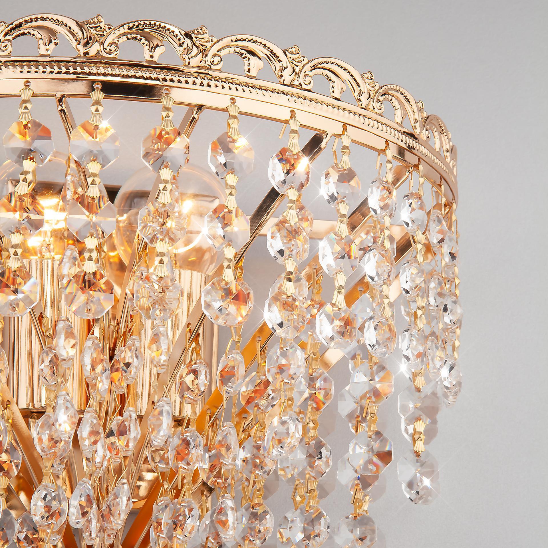 Бра с хрусталем 3402/2 золото Strotskis станет ярким световым акцентом в классических интерьерах и создаст качественное освещение на площади 10 м². Эффектный светильник украшен хрустальными подвесками, которые искрятся в лучах света, наполняя помещение выразительным блеском. В качестве источника света используются сменные лампы типа с цоколем E27. Патрон рассчитан на максимальную мощность ламп накаливания 60 Вт. Корпус светильника выполнен из высококачественного и прочного металла с надежным покрытием. Бра легко монтируется при помощи крепежной планки, которая обеспечивает надежную фиксацию светильника на стене. Классическое бра с изящными формами гармонично сочетается с хрустальными люстрами и станет отличным завершением композиции вашей гостиной или спальни. В интернет-магазине Минимир вы можете купить настенный светильник с хрусталем с доставкой по Москве, Санкт-Петербургу и России.
