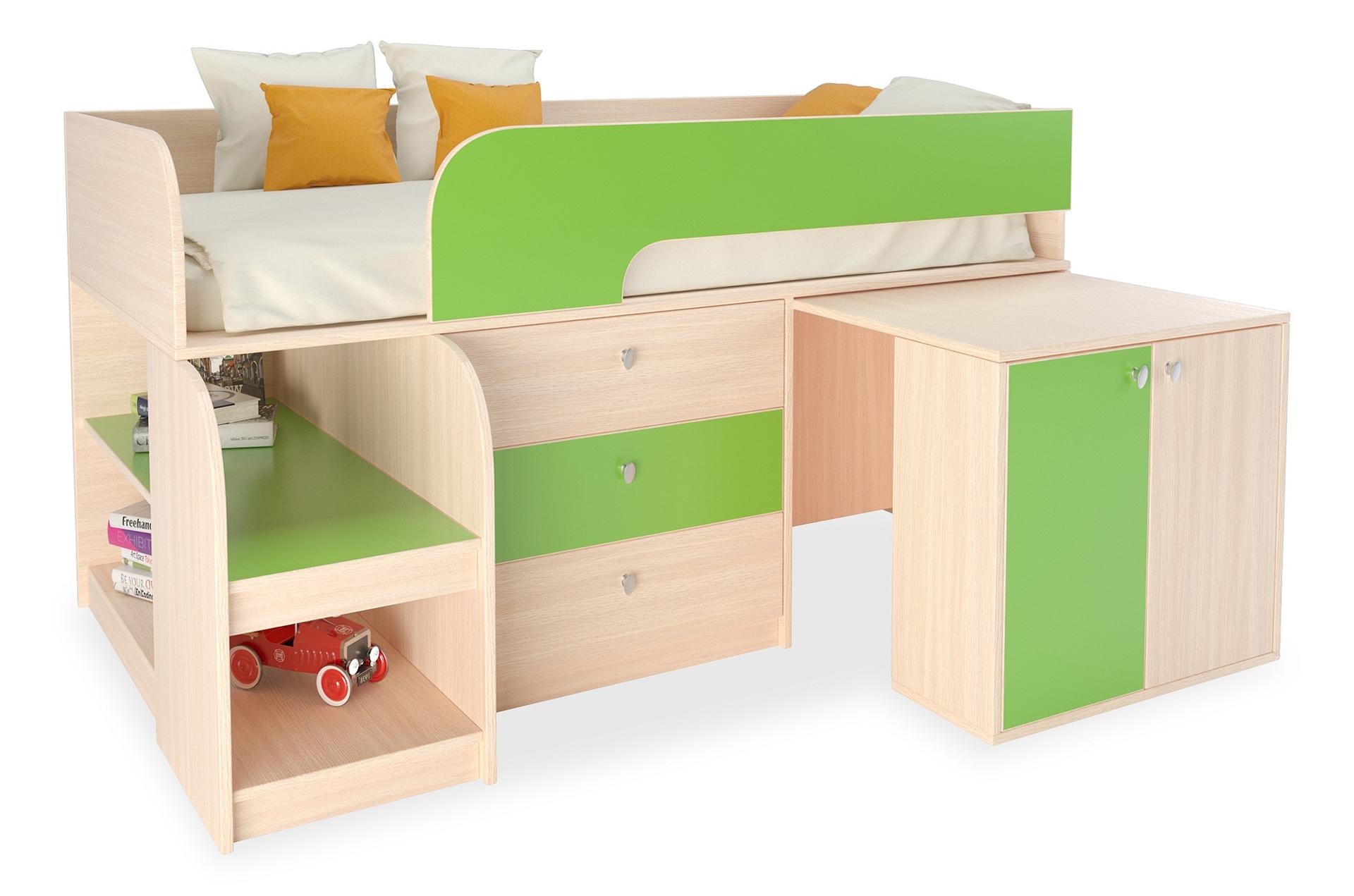 Ваш ребенок вырос и пришла пора обновить мебель в детской комнате? Набор для детской Астра 9/7 RVM_ASTRA9-V7-1-5 – отличное решение, которое понравится не только вам, но и будущему маленькому хозяину или хозяйке. Изделие создано популярным брендом РВ-Мебель (Россия) и относится к серии «Астра 9/7». Эффектный матовый корпус оттенка дуб молочный, салатовый смотрится изысканно и изящно, гармонично дополняя фасад, изготовленный из практичного и оптимального для детской материала (ЛДСП Е1). Перед покупкой новой кровати не забудьте тщательно замерить свободную площадь в комнате, чтобы кровать точно подошла по размерам (900 мм в высоту, 1632 мм в ширину и (уточните актуальную информацию у нашего консультанта) мм в длину), а также подобрать матрас 1600x800 мм. В комплект входит основание настил из ЛДСП;
