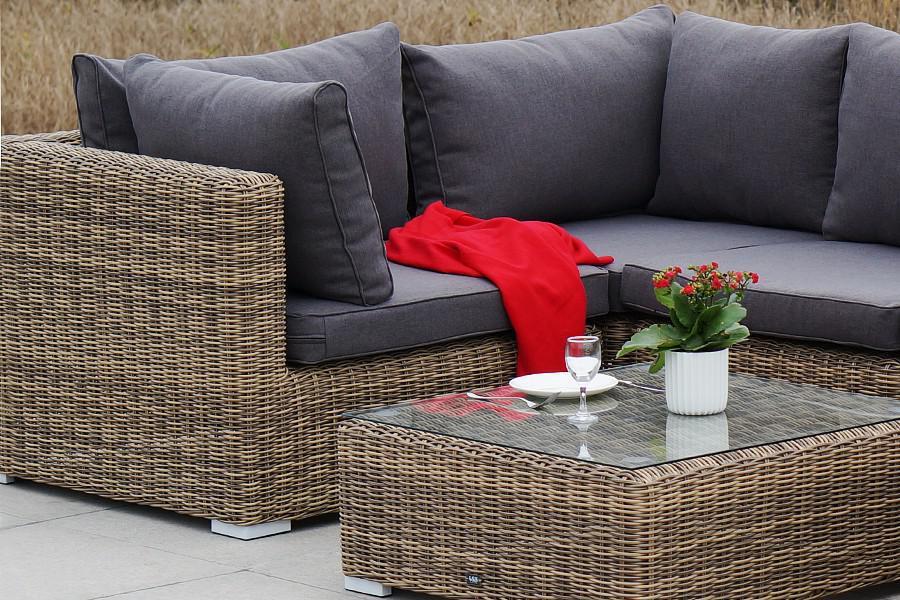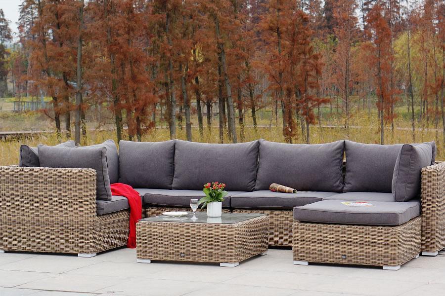 Подушки выполнены из водостойкой полиэфирной ткани для защиты мебели от дождя и солнца.