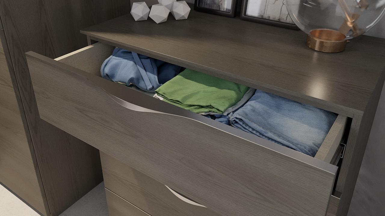 Серия «Либерти», представленная брендом ТриЯ – это эффектная современная мебель, изготовленная на высокотехнологичном оборудовании. Гарнитур для спальни Либерти ГН-297.002 является ярким представителем этой коллекции. Этот гарнитур состоит из следующих компонентов: комод - 801х445х876 мм, кровать - 2154х1674х1020 мм, шкаф платяной - 900х600х2188 мм, 2 тумбочки - 451х445х507 мм, 2 шкафа для белья - 451х600х2188 мм. Выигрышный дизайн подчеркивается изысканностью оттенка фасада (зеркальный, серый, хадсон), сделанного из простого в эксплуатации и практичного материала (зеркало, ЛДСП Е1, ЛКП, МДФ), а зеркальный, матовый корпус, выполненный из ЛДСП Е1, завершает образ. Приятных покупок!