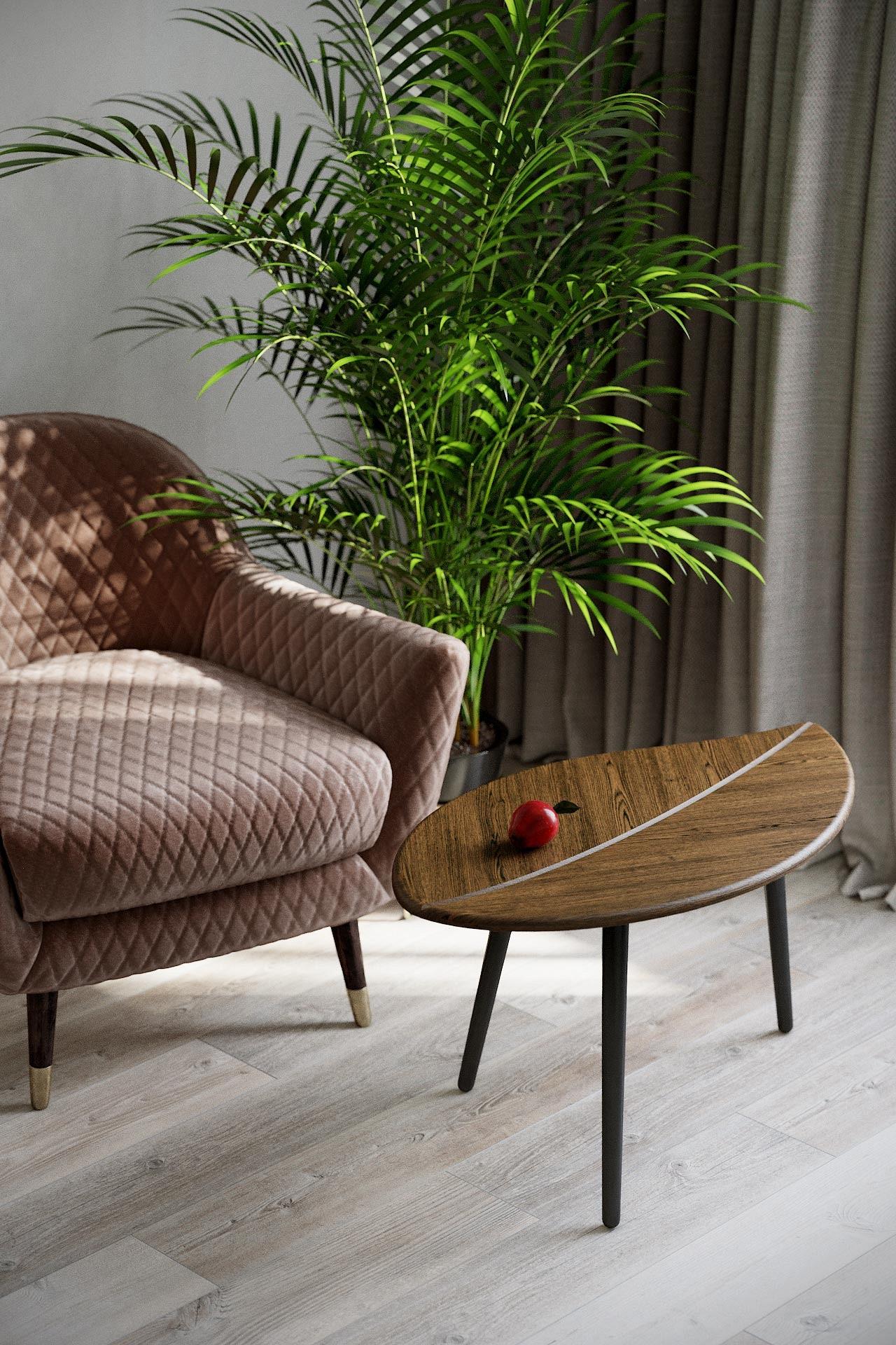 Особенностью дизайнерского решения журнального стола "Берли"является оригинальное сочетание фрезеровки столешницы в форме листа дерева и текстуры декоративного покрытия.