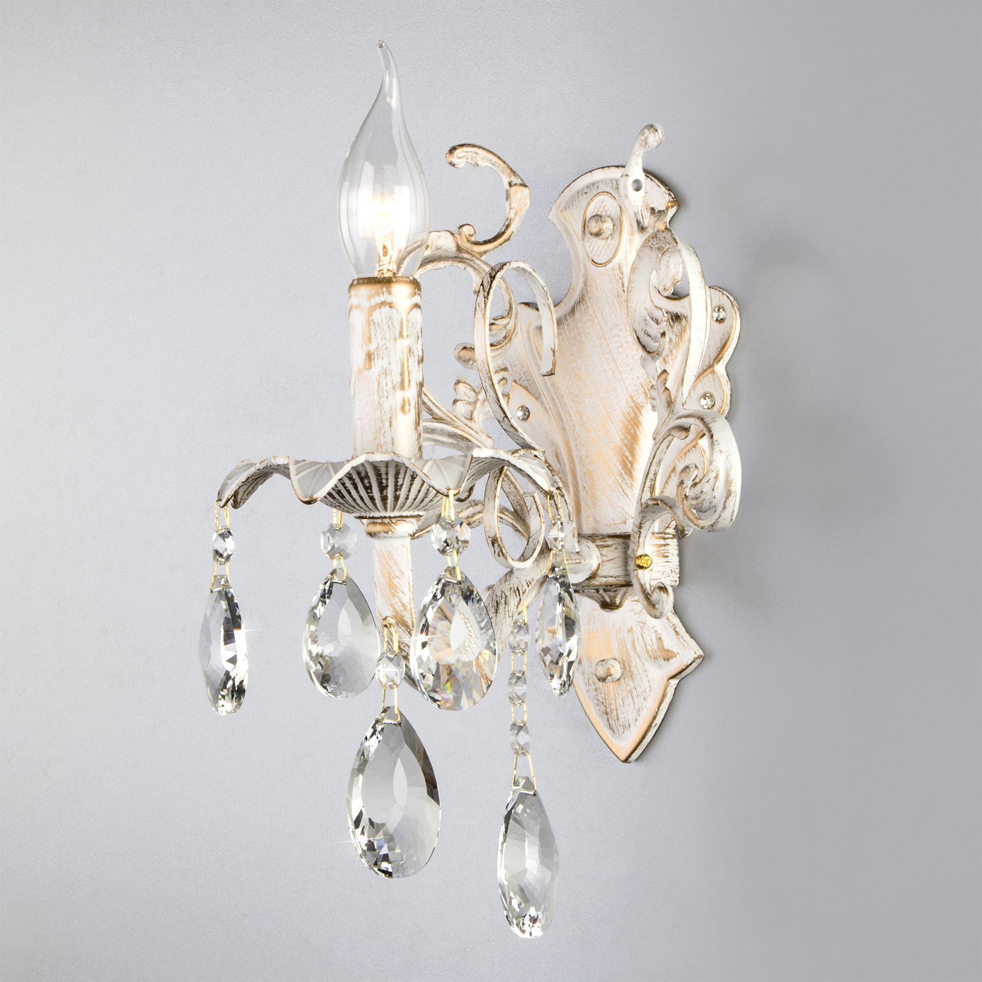 Классическое хрустальное бра Eurosvet 3113/1 белый с золотом/прозрачный хрусталь Strotskis