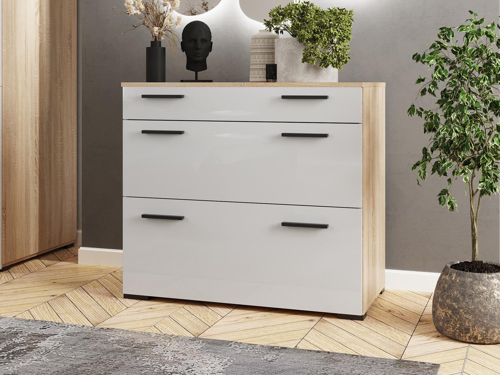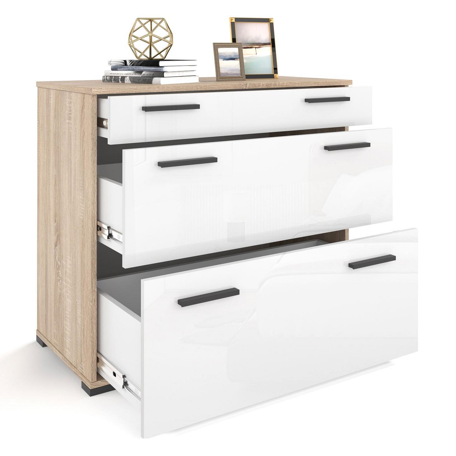 Мелочи создают общее настроение в интерьере, особенно, если лежат не на своих местах. Справиться с этой задачей поможет комод Эдмонтон K94 HSB_K94_DSWG, сделанный актуальным брендом Hesby. Данная модель входит в серию «Эдмонтон» и стоит 8490 руб. Производитель предлагает следующую комплектацию: 3 ящика. Матовый корпус изготовлен в благородном оттенке «дуб сонома», прекрасно сочетающимся с расцветкой фасада (белый), изготовленного из качественного сырья (МДФ). Благодаря оптимальным размерам комода (изделие длиной 800 мм, шириной 900 мм и выступом 450 мм), вы сможете разместить в нем все необходимое, при этом сохранив полезное пространство в помещении.