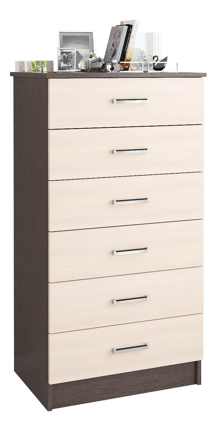Мелочи создают общее настроение в интерьере, особенно, если лежат не на своем месте. Справиться с этой задачей поможет комод Катрин-4 TKS_00-00003851, сделанный актуальным брендом Тэкс. Данная модель входит в серию «Катрин-4» и стоит 6239 руб. Производитель предлагает следующую комплектацию: 6 ящиков. Матовый корпус выполнен в благородном оттенке «венге», прекрасно сочетающимся с расцветкой фасада (дуб молочный), изготовленного из качественного сырья (ЛДСП Е1). Благодаря оптимальным габаритам комода (изделие длиной 1160 мм, шириной 620 мм и выступом 425 мм), вы сможете разместить в нем все необходимое, при этом сохранив полезное пространство в комнате.
