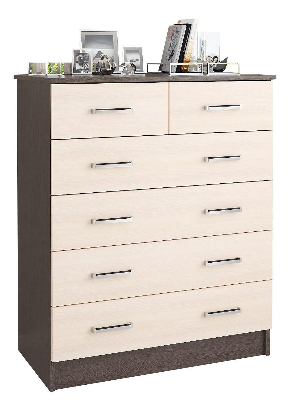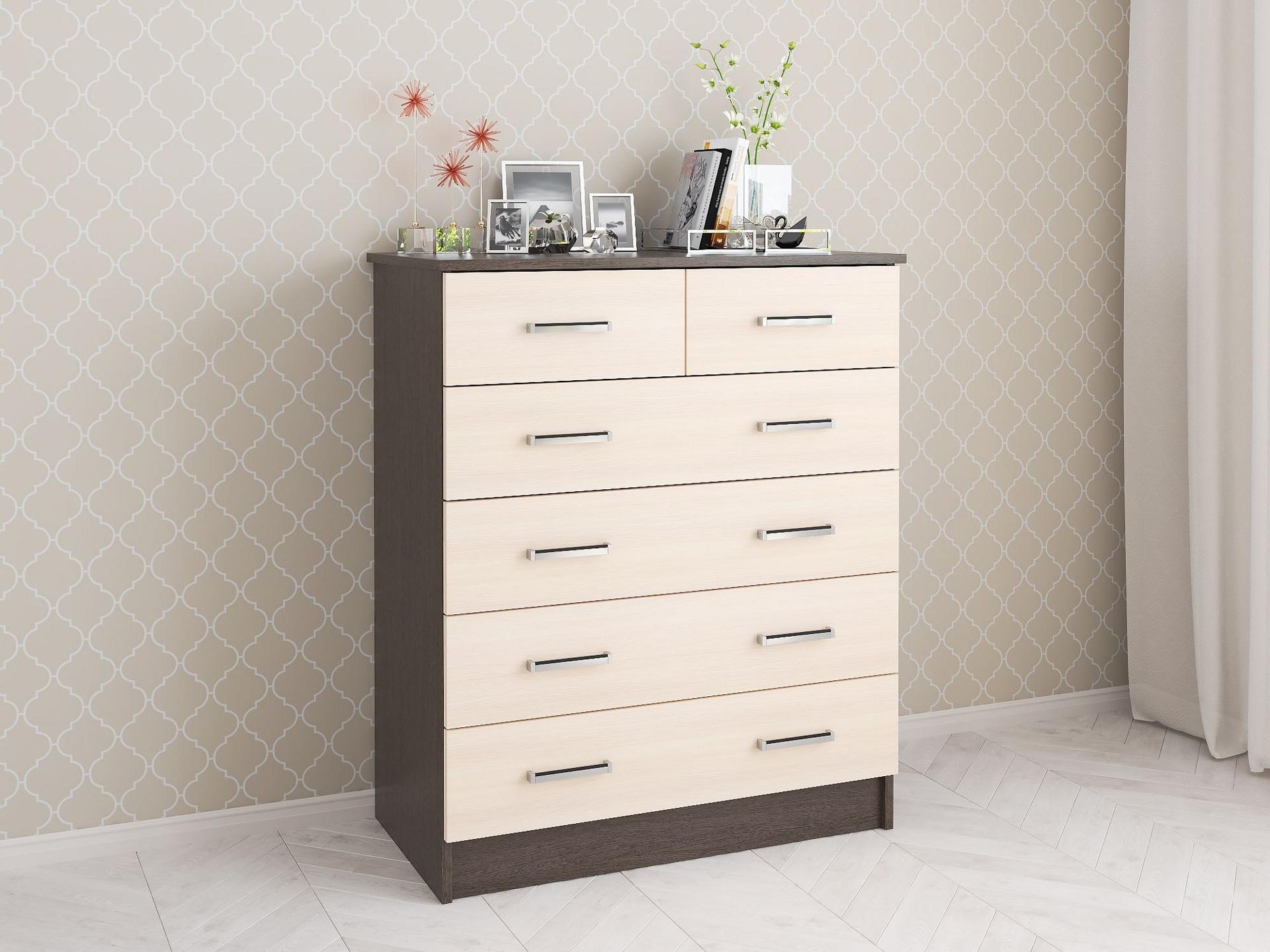 Мелочи создают общее настроение в интерьере, особенно, если лежат не на своих местах. Справиться с этой задачей поможет комод Катрин-5 TKS_00-00003852, сделанный актуальным брендом Тэкс. Данная модель входит в коллекцию «Катрин-5» и стоит 7023 руб. Производитель предлагает следующую комплектацию: 6 ящиков. Матовый корпус изготовлен в благородном оттенке «венге», прекрасно сочетающимся с расцветкой фасада (дуб молочный), изготовленного из качественного сырья (ЛДСП Е1). Благодаря оптимальным размерам комода (изделие длиной 990 мм, шириной 820 мм и выступом 425 мм), вы сможете разместить в нем все необходимое, при этом сохранив полезное пространство в комнате.