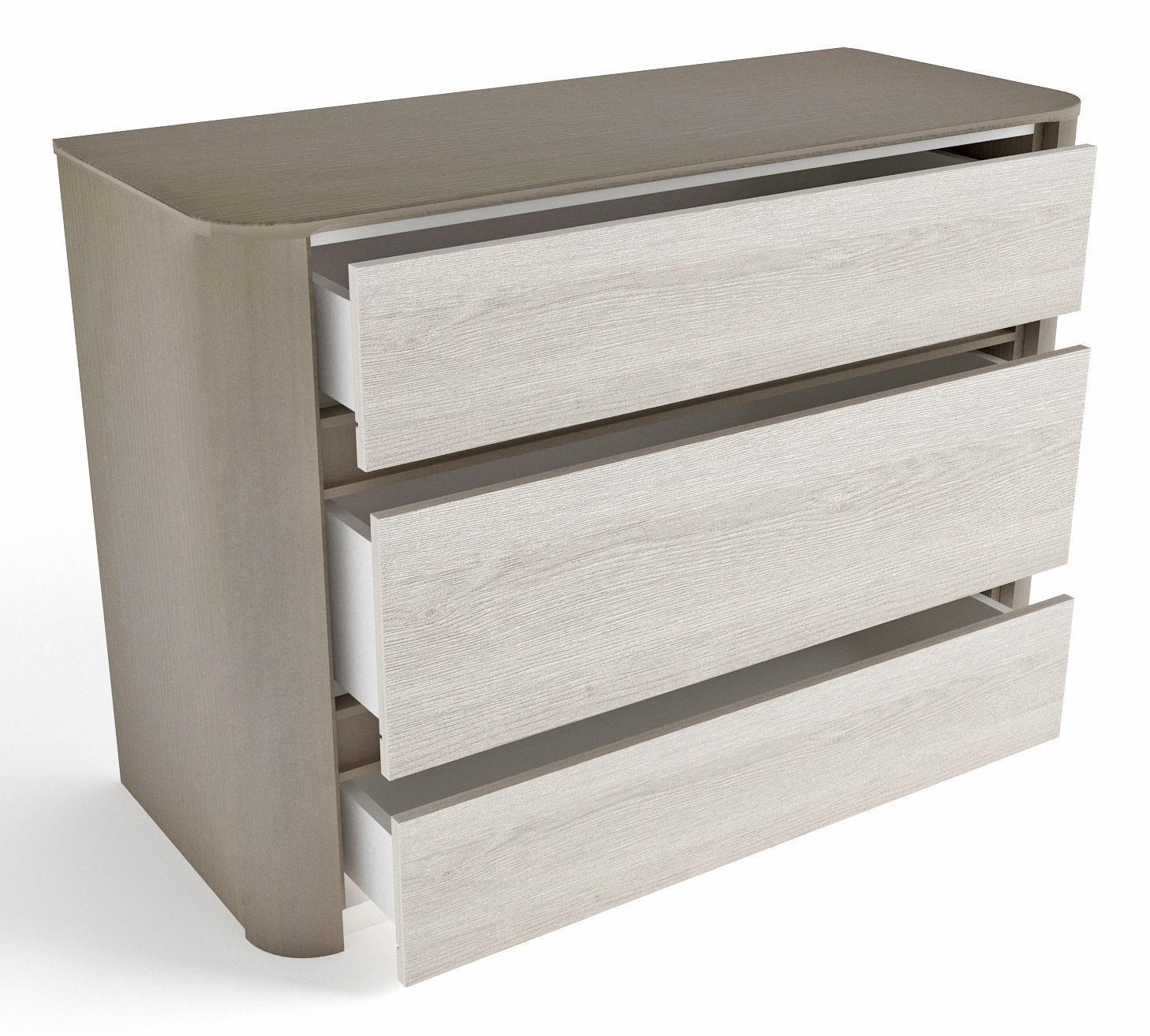 Мелочи создают общее настроение в интерьере, особенно, если лежат не на своих местах. Справиться с этой задачей поможет комод Лацио , созданный актуальным брендом СБК. Производитель предлагает следующую комплектацию: 3 ящика. Матовый корпус выполнен в благородном оттенке «белая шагрень, серый камень», прекрасно сочетающимся с расцветкой фасада (дуб гладстоун белый, серый камень), изготовленного из ЛДСП Е1, ЛМДФ. Благодаря оптимальным размерам комода (изделие длиной 760 мм, шириной 1076 мм и выступом 446 мм), вы сможете разместить в нем все необходимое, при этом сохранив полезное пространство в комнате.