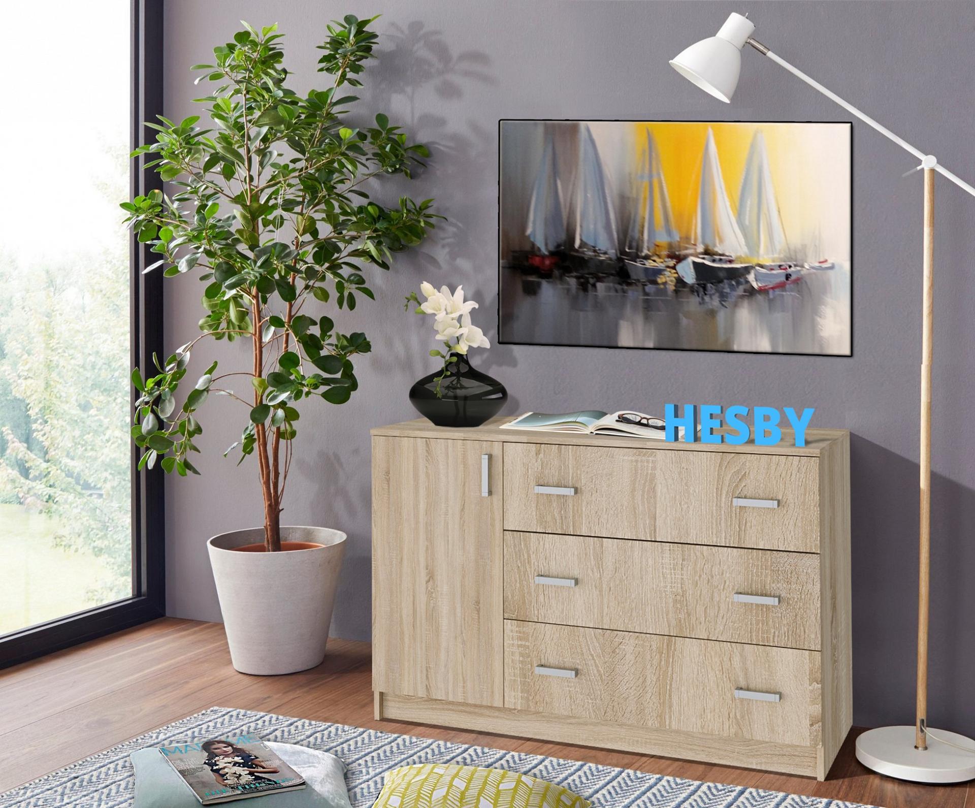 Мелочи создают общее настроение в интерьере, особенно, если лежат не на своем месте. Справиться с этой задачей поможет комод Майями 1200 HSBN_10021, созданный актуальным брендом Hesby. Данная модель входит в серию «Майями» и стоит 6750 руб. Производитель предлагает следующую комплектацию: 1 дверца, 1 полка, 3 ящика. Матовый корпус выполнен в благородном оттенке «дуб сонома», тонко перекликающимся с расцветкой фасада (дуб сонома), изготовленного из качественного сырья (ЛДСП Е1). Благодаря оптимальным габаритам комода (изделие длиной 774 мм, шириной 1182 мм и выступом 440 мм), вы сможете расположить в нем все необходимое, при этом сохранив полезное пространство в комнате.