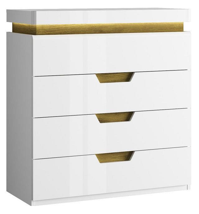 Мелочи создают общее настроение в интерьере, особенно, если лежат не на своем месте. Справиться с этой задачей поможет комод Torino 4S ANR_UT-70005580, сделанный популярным брендом Анрекс. Данная модель входит в коллекцию «Torino» и стоит 18699 руб. Производитель предлагает следующую комплектацию: 4 ящика. Глянцевый, матовый корпус изготовлен в благородном оттенке «белый, дуб наварра», тонко перекликающимся с расцветкой фасада (белый), изготовленного из качественного сырья (ЛДСП Е1, МДФ). Благодаря оптимальным размерам комода (изделие длиной 949 мм, шириной 882 мм и выступом 380 мм), вы сможете расположить в нем все необходимое, при этом сохранив полезное пространство в помещении.
