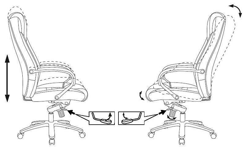 Механизм со смещенной осью качания с возможностью фиксации в нескольких положениях. Регулировка высоты - газлифт. Подлокотники хромированные с мягкими накладками из натуральной кожи. Крестовина металлическая хромированная. Газпатрон – 4 класс. Колеса для паркета и ламината с накладкой PU. Материал обивки: натуральная кожа (лицевые части), искусственная кожа (торцевые и задние части).