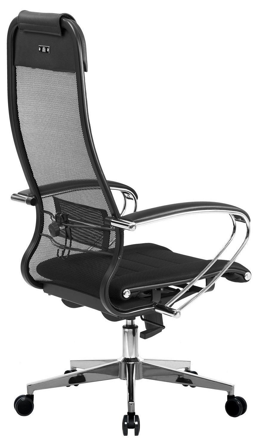 Подлокотники - стальные классические, покрытые зеркальным хромом. Обивка накладок - экокожа.
