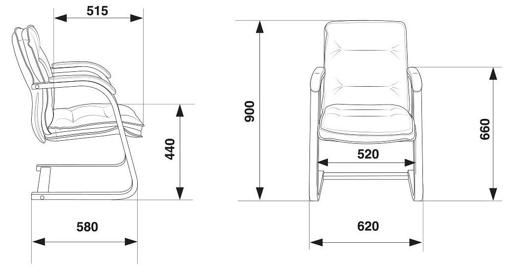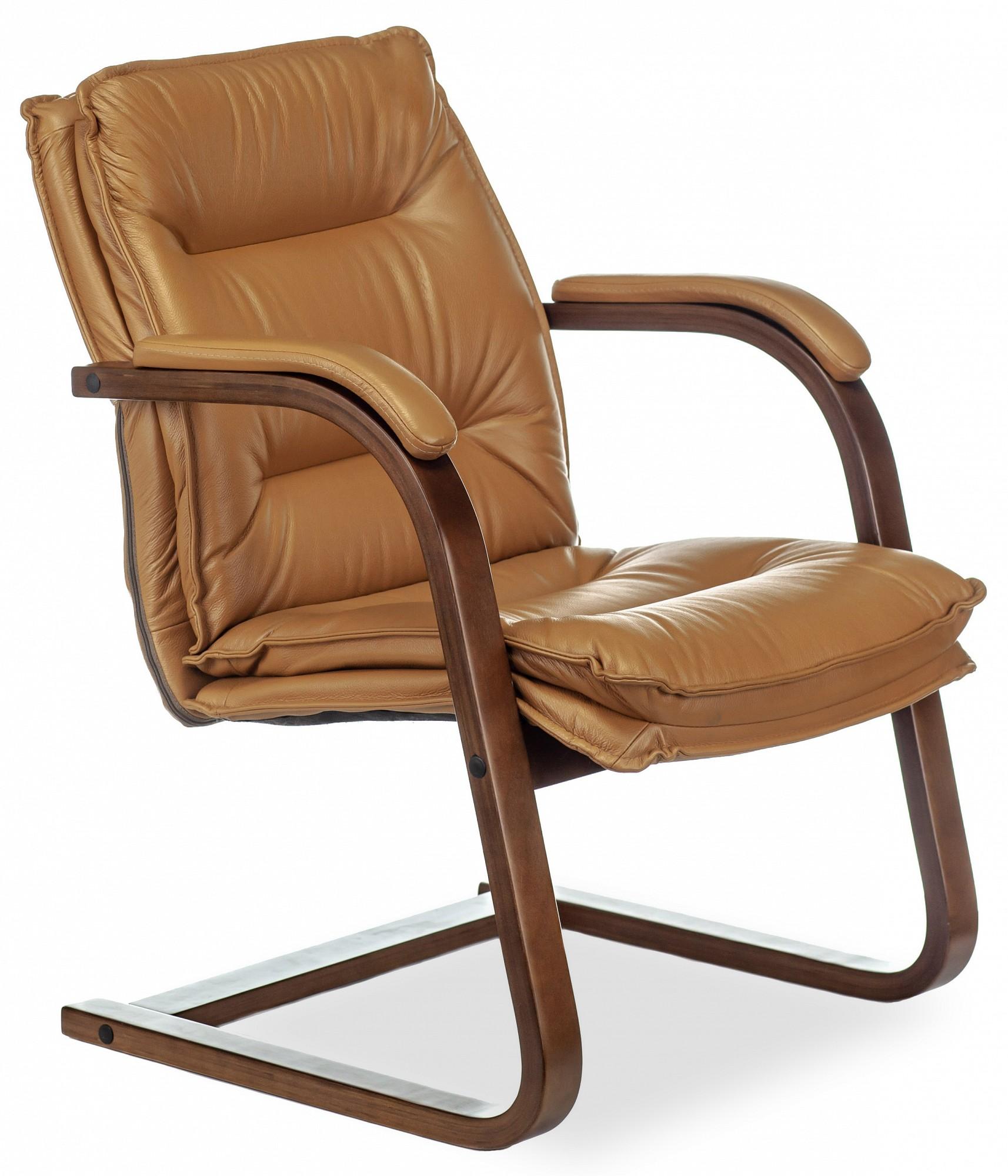 Подлокотники деревянные цвета темный орех с мягкими накладками из натуральной кожи (лицевые части). Каркас деревянный, полозья. Соответствует стандарту Bifma.