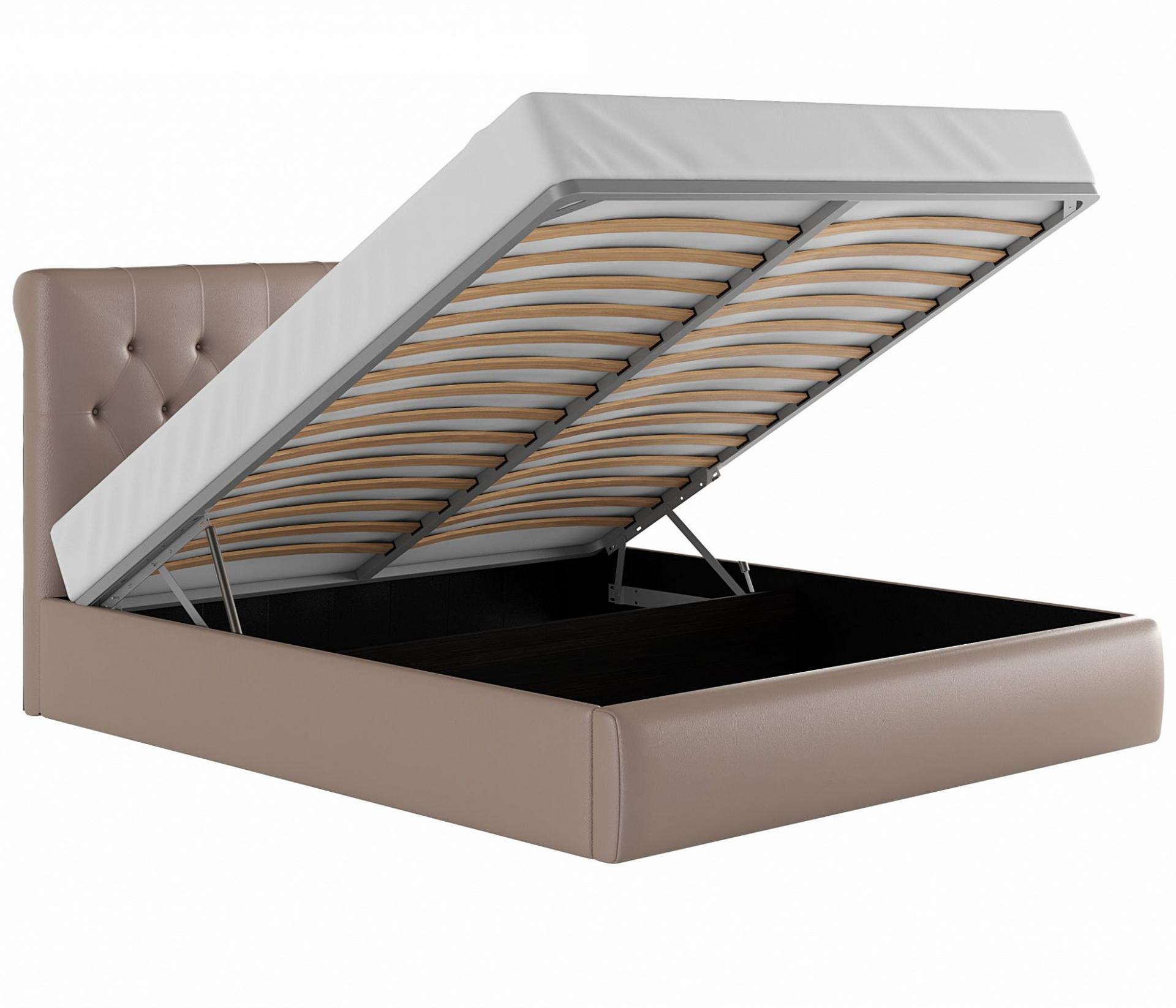 Кровать оборудована удобным подъемным механизмом. Подъемный механизм с гнутоклееными ортопедическими основаниями поднимает кровать под углом 45 градусов.