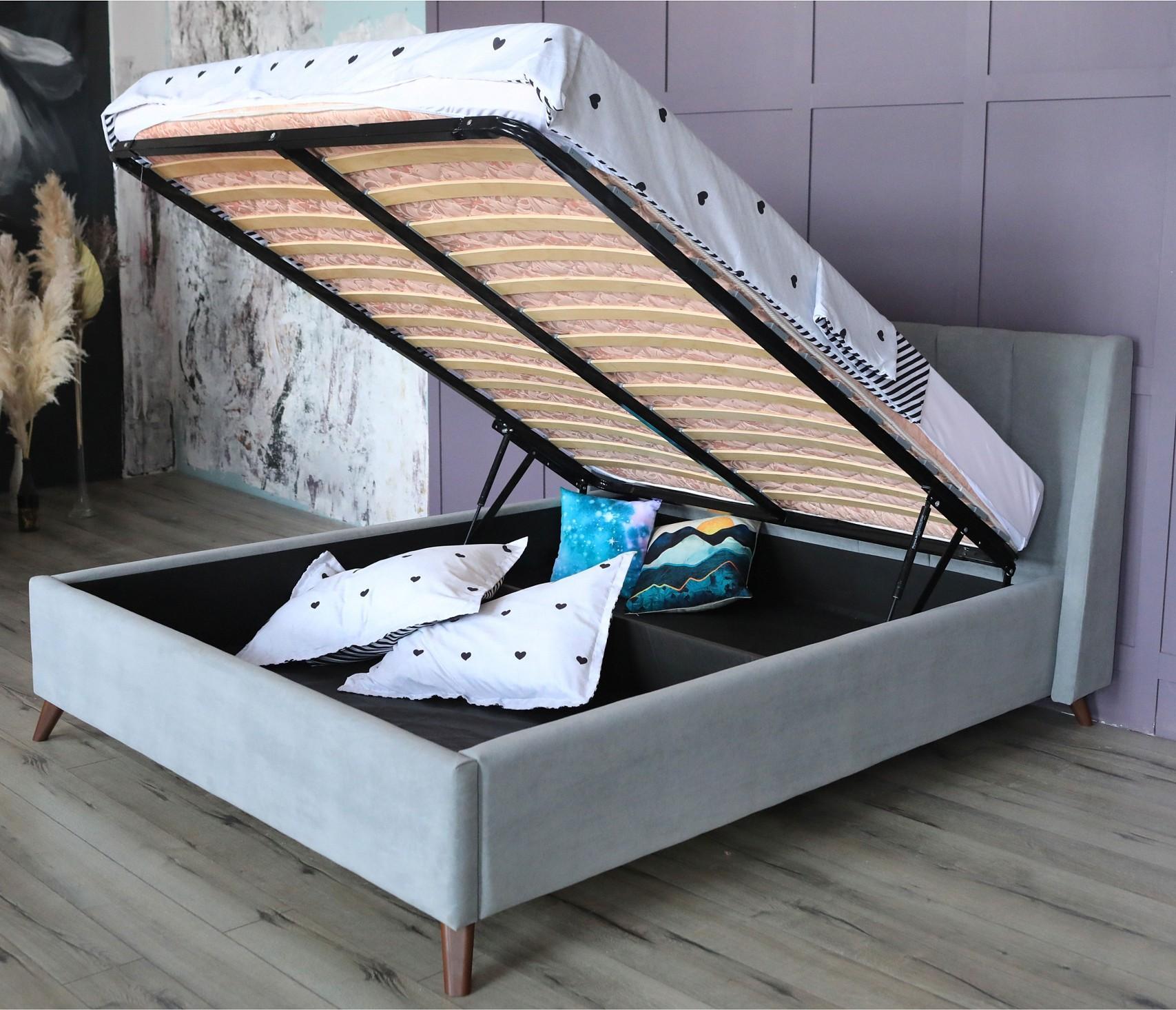 Газлифты повышенной мощности позволяют поднимать и опускать ортопедическую рамку с матрасом без всяких усилий. Подкроватная часть предназначена для хранения постельных принадлежностей, которое закрывается противопыльным матерчатым коробом из плотного спанбонда. Матерчатый короб фиксируется в подматрасном пространстве с помощью системы ленты-липучки "HOOK&LOОP".