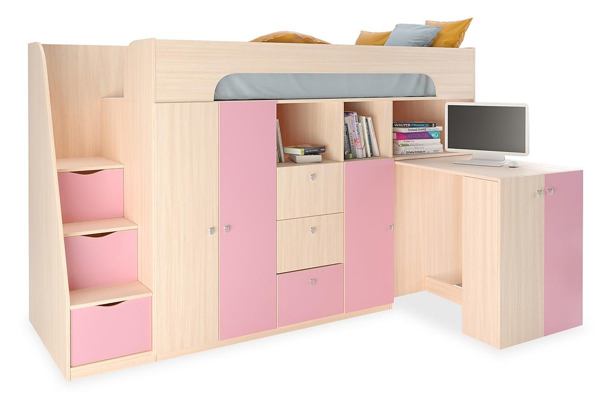 Ваш ребенок подрос и наступила пора обновить мебель в детской комнате? Набор для детской Астра 11 RVM_ASTRA11-1-8 – отличное решение, которое придется по душе не только вам, но и будущему маленькому хозяину или хозяйке. Изделие изготовлено известным брендом РВ-Мебель (Россия) и относится к серии «Астра 11». Благородный матовый корпус оттенка дуб молочный, розовый смотрится изысканно и изящно, гармонично дополняя фасад, изготовленный из практичного и востребованного для детской материала (ЛДСП Е1). Перед приобретением новой кровати не забудьте тщательно замерить свободную площадь в комнате, чтобы кровать точно подошла по габаритам (1430 мм в высоту, 2360 мм в ширину и (уточните актуальную информацию у нашего консультанта) мм в длину), а также подобрать матрас 1900x800 мм. В комплект входит лестница-комод: 3 ящика;