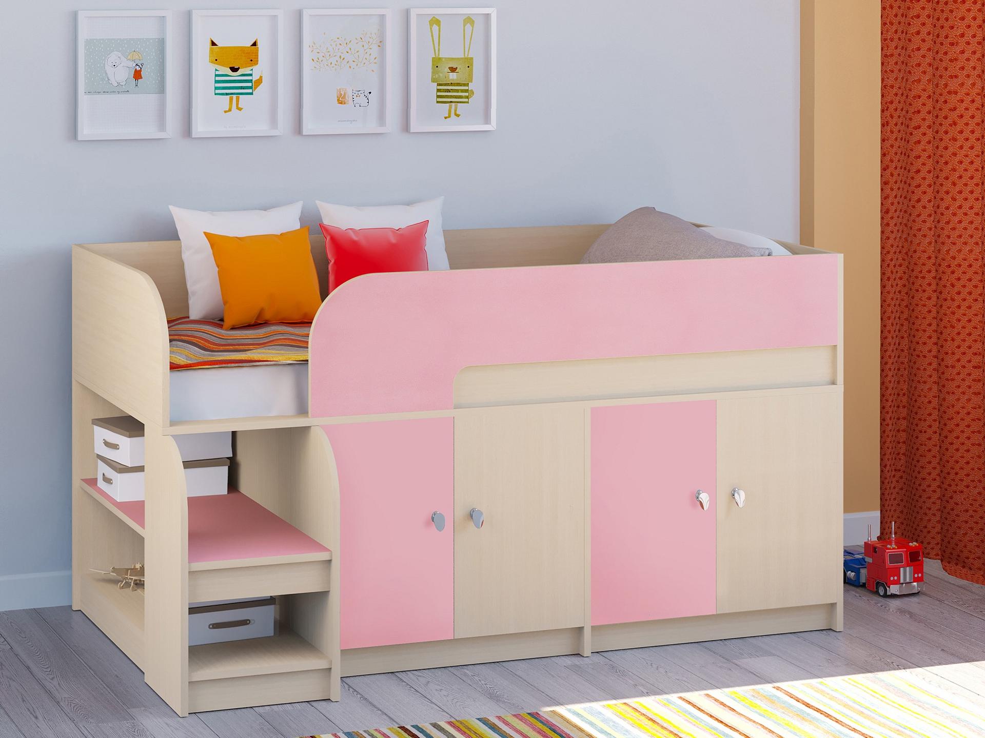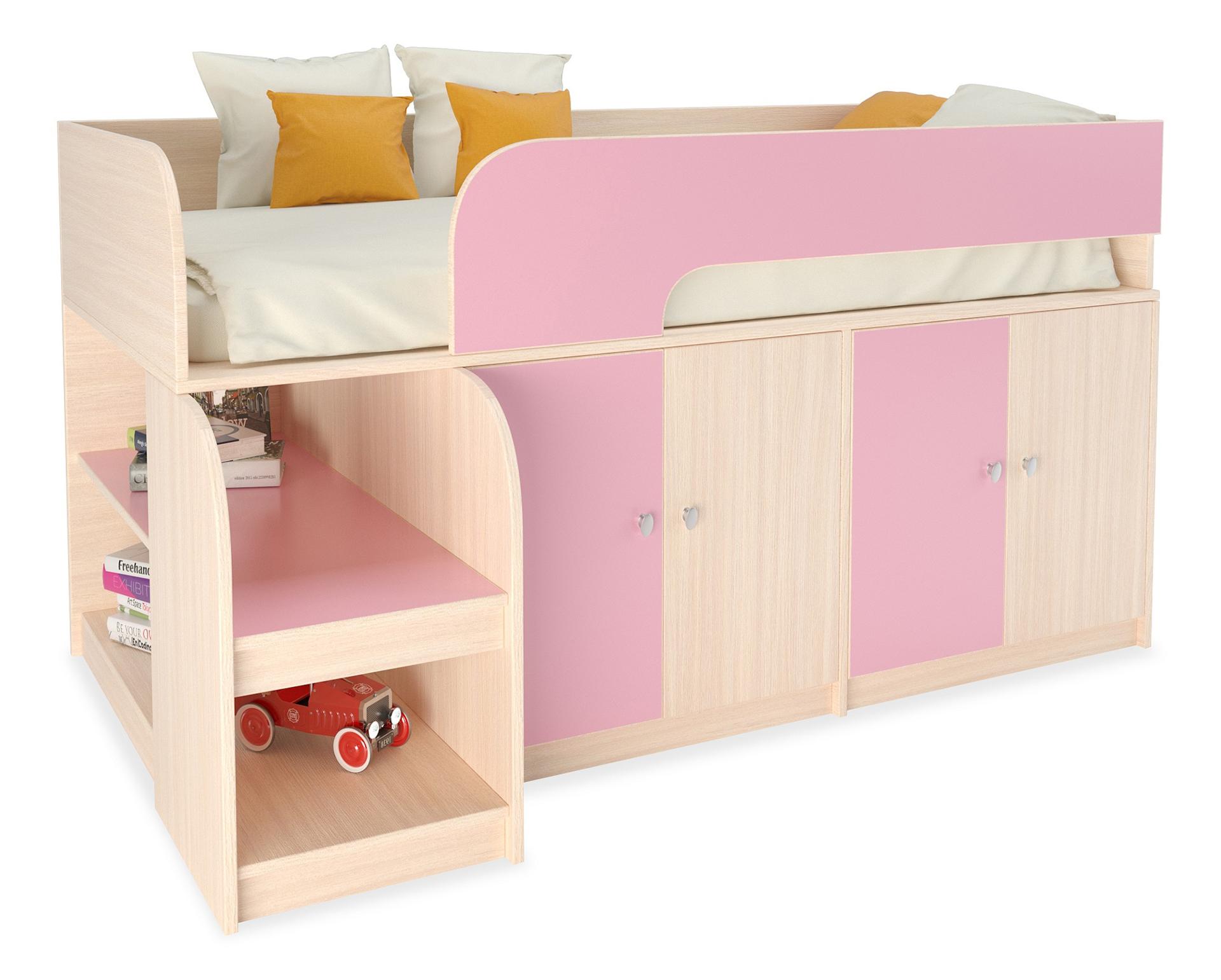Ваш ребенок подрос и наступила пора обновить мебель в детской? Набор для детской Астра 9/2 RVM_ASTRA9-V2-1-8 – отличное решение, которое понравится не только вам, но и будущему маленькому хозяину или хозяйке. Изделие выпущено известным брендом РВ-Мебель (Россия) и относится к серии «Астра 9/2». Оригинальный матовый корпус оттенка дуб молочный, розовый смотрится изысканно и изящно, гармонично дополняя фасад, изготовленный из практичного и востребованного для детской материала (ЛДСП Е1). Перед приобретением новой кровати советуем тщательно замерить свободную площадь в помещении, чтобы кровать оптимально подошла по габаритам (900 мм в высоту, 1632 мм в ширину и (уточните актуальную информацию у нашего консультанта) мм в длину), а также подобрать матрас 1600x800 мм. В комплект входит основание настил из ЛДСП,
