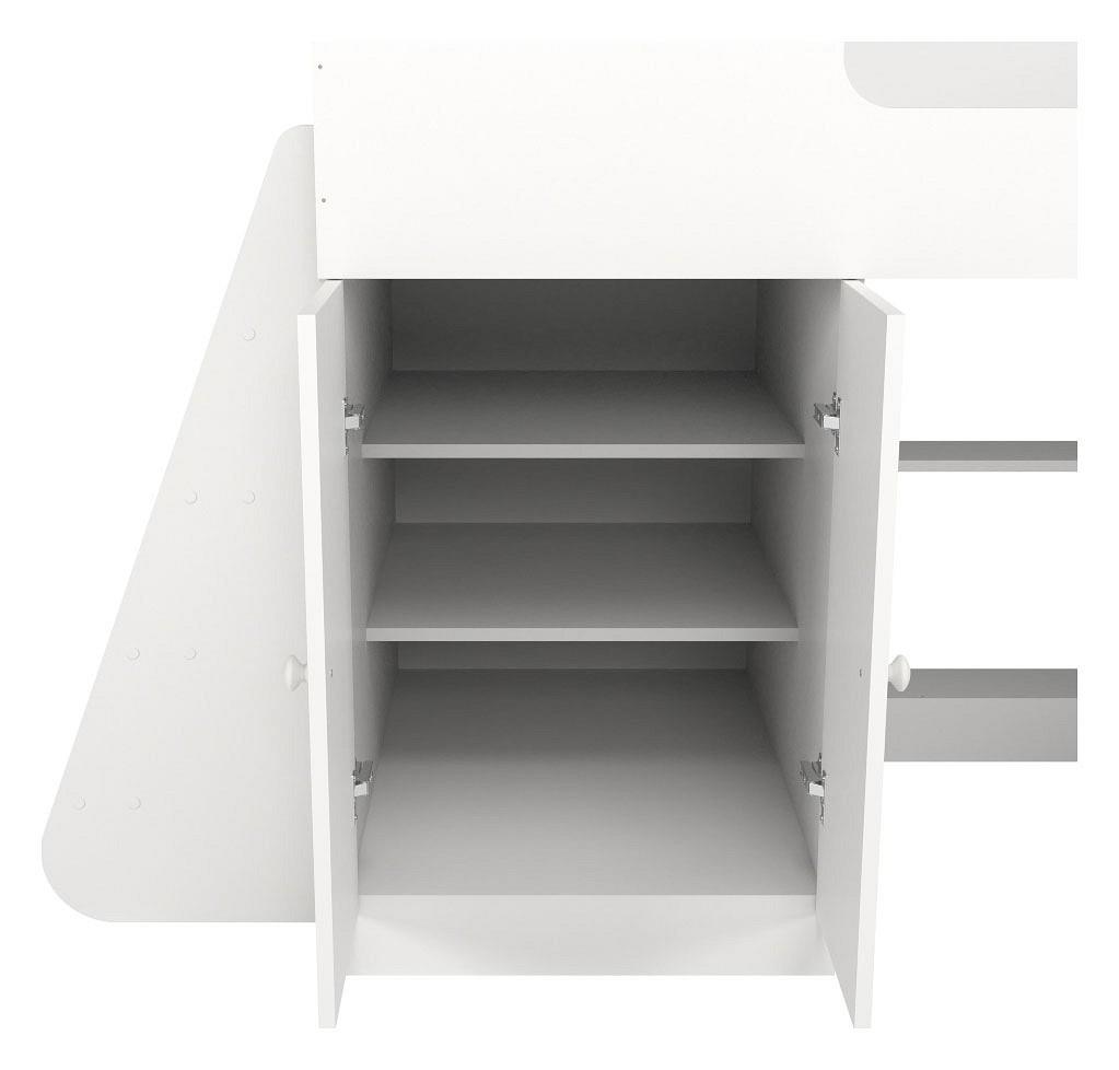 Ваш ребенок подрос и пришла пора обновить мебель в детской? Набор для детской Р441 KPZ_404623 – отличное решение, которое придется по душе не только вам, но и будущему маленькому хозяину или хозяйке. Изделие создано популярным брендом Капризун (Россия) и входит в серию «Р441». Благородный матовый корпус оттенка белый смотрится изысканно и изящно, гармонично дополняя фасад, изготовленный из надежного и оптимального для детской материала (ЛДСП Е1). Перед приобретением новой кровати рекомендуем тщательно замерить свободную площадь в комнате, чтобы кровать оптимально подошла по габаритам (1090 мм в высоту, 1648 мм в ширину и (уточните актуальную информацию у нашего консультанта) мм в длину), а также подобрать матрас 1600x800 мм мм. В комплект входит лестница,