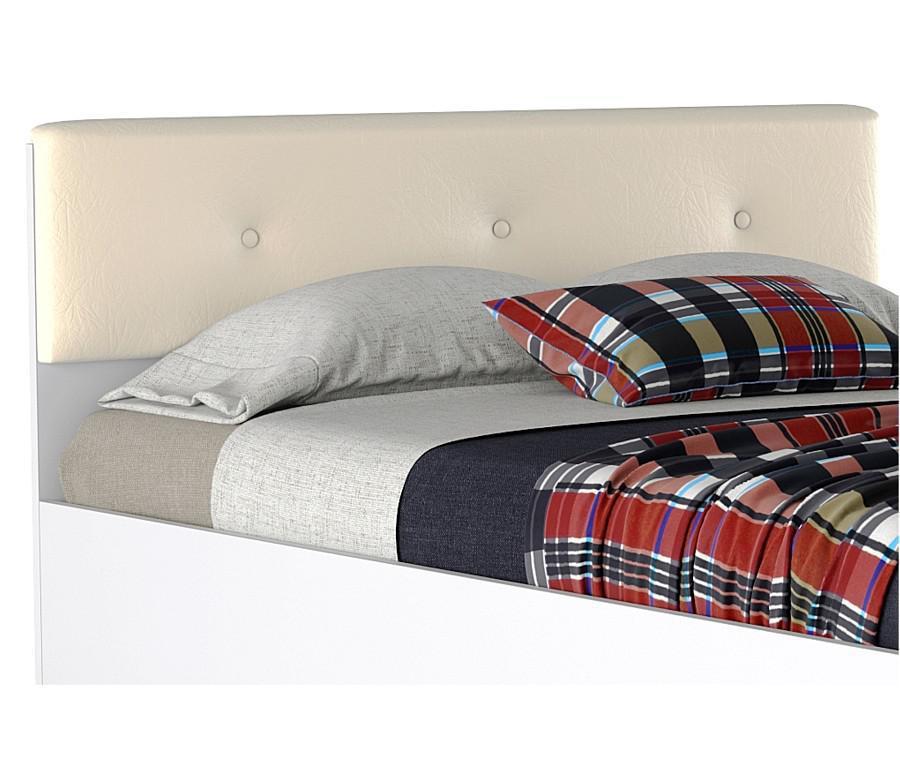 Изголовье кровати украшено накладкой из высокопрочного материала “Винилискожа”.