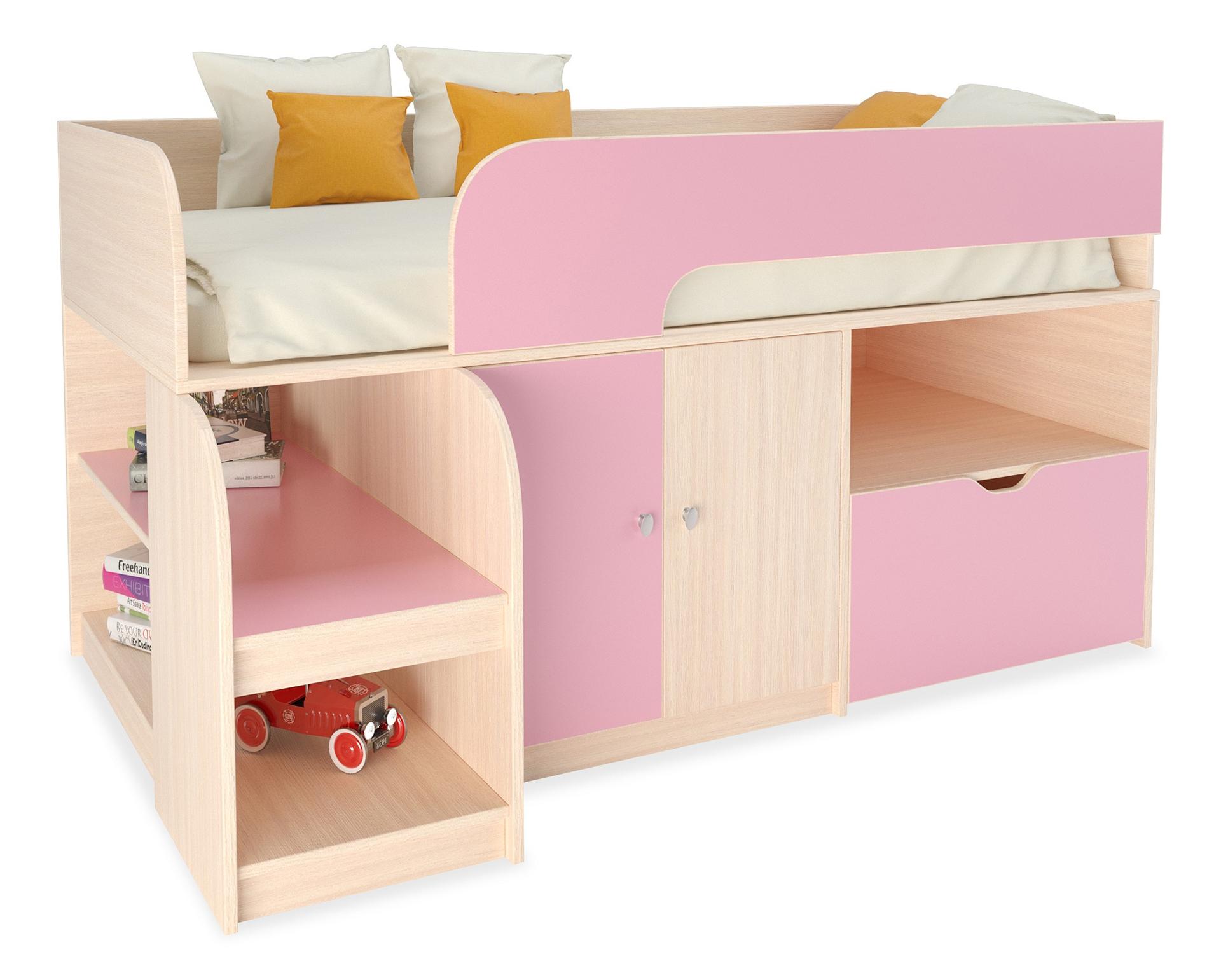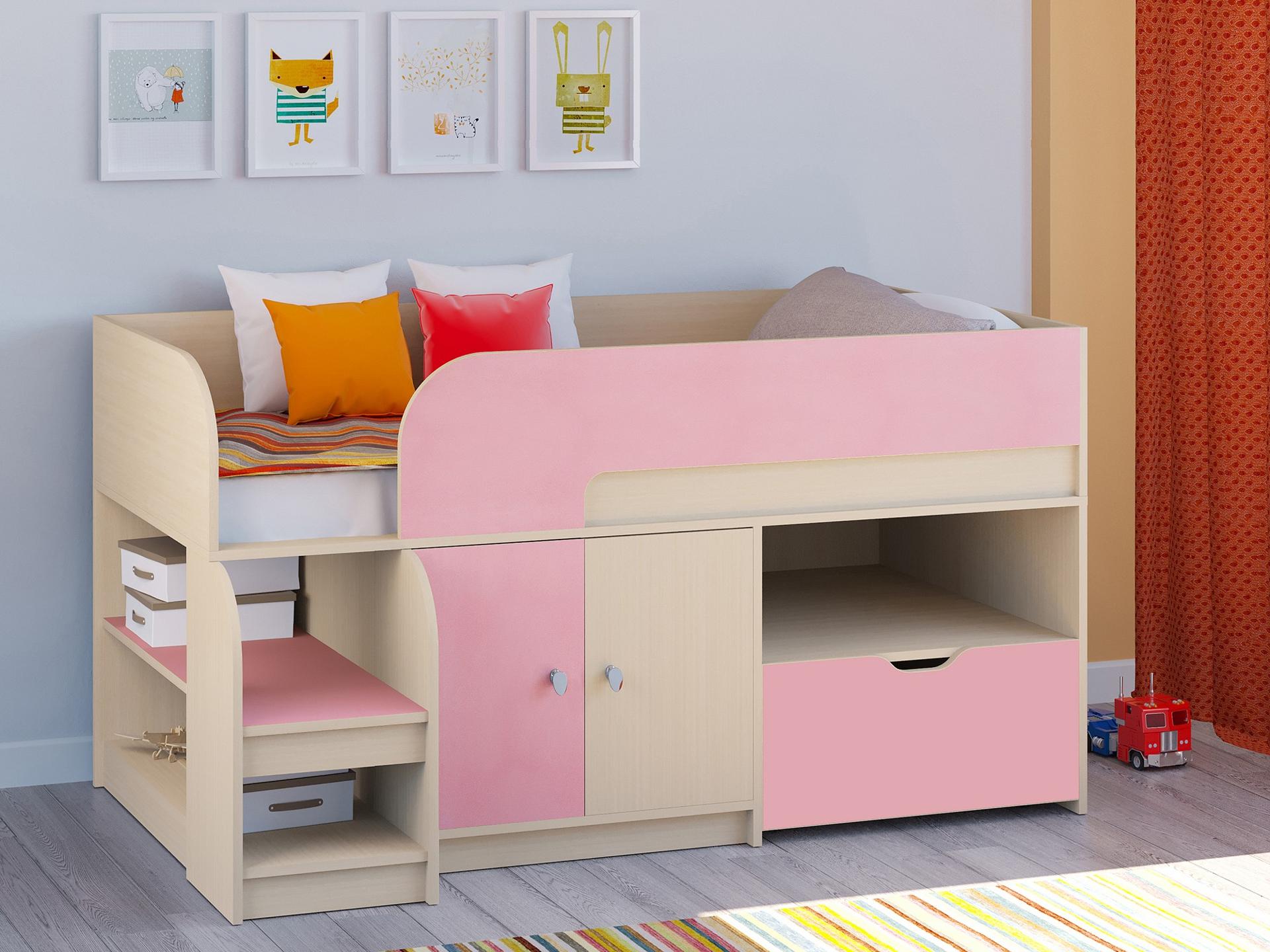 Ваш ребенок вырос и пришла пора обновить мебель в детской комнате? Набор для детской Астра 9/4 RVM_ASTRA9-V4-1-8 – отличное решение, которое придется по душе не только вам, но и будущему маленькому хозяину или хозяйке. Изделие создано известным брендом РВ-Мебель (Россия) и относится к коллекции «Астра 9/4». Эффектный матовый корпус оттенка дуб молочный, розовый смотрится изысканно и изящно, гармонично дополняя фасад, изготовленный из надежного и оптимального для детской материала (ЛДСП Е1). Перед покупкой новой кровати не забудьте тщательно замерить свободную площадь в помещении, чтобы кровать оптимально подошла по размерам (900 мм в высоту, 1632 мм в ширину и (уточните актуальную информацию у нашего консультанта) мм в длину), а также подобрать матрас 1600x800 мм. В комплект входит основание настил из ЛДСП,