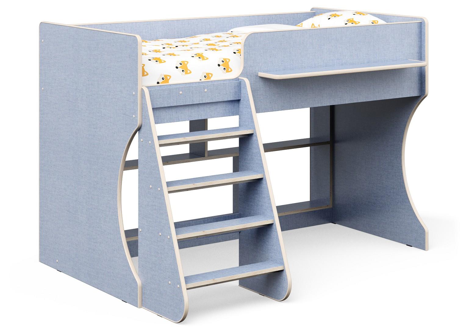 Ваш ребенок подрос и пришла пора обновить мебель в детской комнате? Кровать-чердак Р436 KPZ_405508 – отличное решение, которое придется по душе не только вам, но и будущему маленькому хозяину или хозяйке. Изделие создано популярным брендом Капризун (Россия) и входит в коллекцию «Р436». Оригинальный матовый корпус оттенка лен голубой смотрится изысканно и изящно, гармонично дополняя фасад, изготовленный из надежного и оптимального для детской материала (прочного и экологичного). Перед приобретением новой кровати рекомендуем тщательно замерить свободную площадь в помещении, чтобы кровать точно подошла по размерам (1127 мм в высоту, 1255 мм в ширину и 1642 мм в длину), а также подобрать матрас 1600x800 мм мм. В комплект входит лестница,