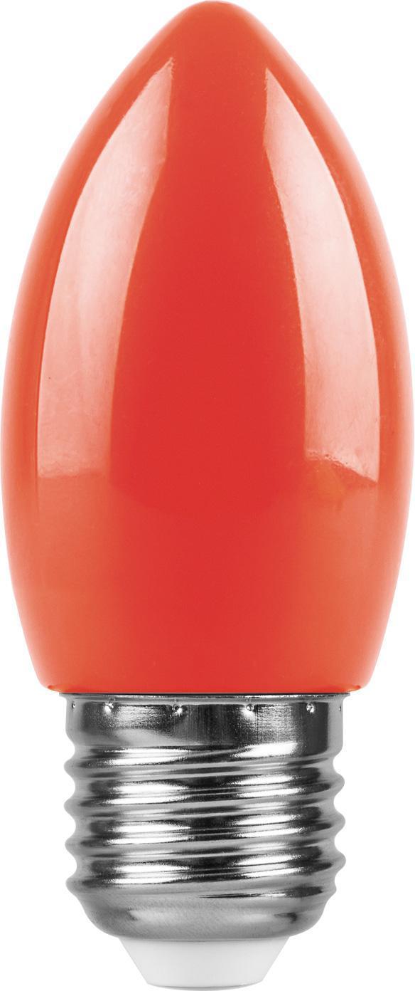 Лампа светодиодная FERON LB-376, C35 (свеча), 1W 230V E27 (красный), рассеиватель матовый красный, угол рассеивания 220°, 85*35мм