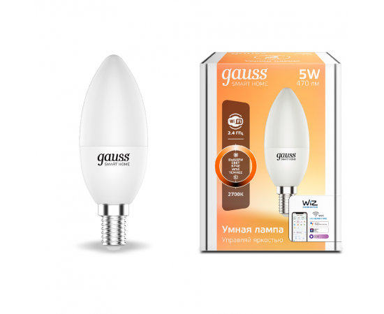 ЛАМПА СВЕТОДИОДНАЯ GAUSS SMART HOME DIM E14 C37 5 ВТ 2700К 1/10/40