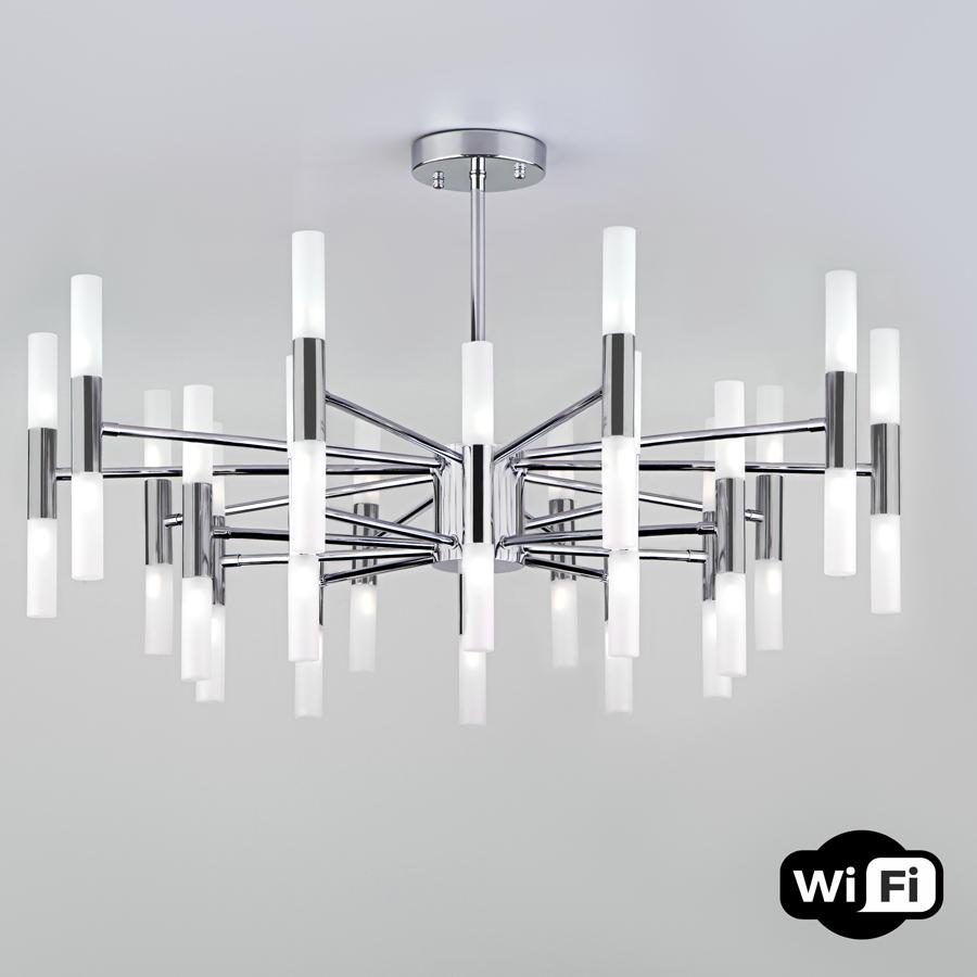 Данная модель входит в состав коллекции Bastone и исполнена в стиле модерн. Люстра имеет высоту 500 мм и диаметр 800 мм. Работает при напряжении 230 V.