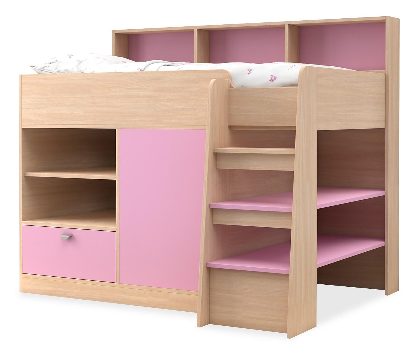 Ваш ребенок подрос и пришла пора обновить мебель в детской комнате? Набор для детской Golden Kids 9 FSN_GK09-KM-FR – отличное решение, которое придется по душе не только вам, но и будущему маленькому хозяину или хозяйке. Изделие изготовлено известным брендом Golden Kids (Россия) и входит в серию «Golden Kids 9». Эффектный матовый корпус оттенка дуб молочный, розовый смотрится изысканно и изящно, гармонично дополняя фасад, изготовленный из практичного и оптимального для детской материала (ЛДСП Е1). Перед приобретением новой кровати советуем тщательно замерить свободную площадь в комнате, чтобы кровать оптимально подошла по размерам (1382 мм в высоту, 1669 мм в ширину и (уточните актуальную информацию у нашего консультанта) мм в длину), а также подобрать матрас 1600x800 мм мм. В комплект входит лестница,