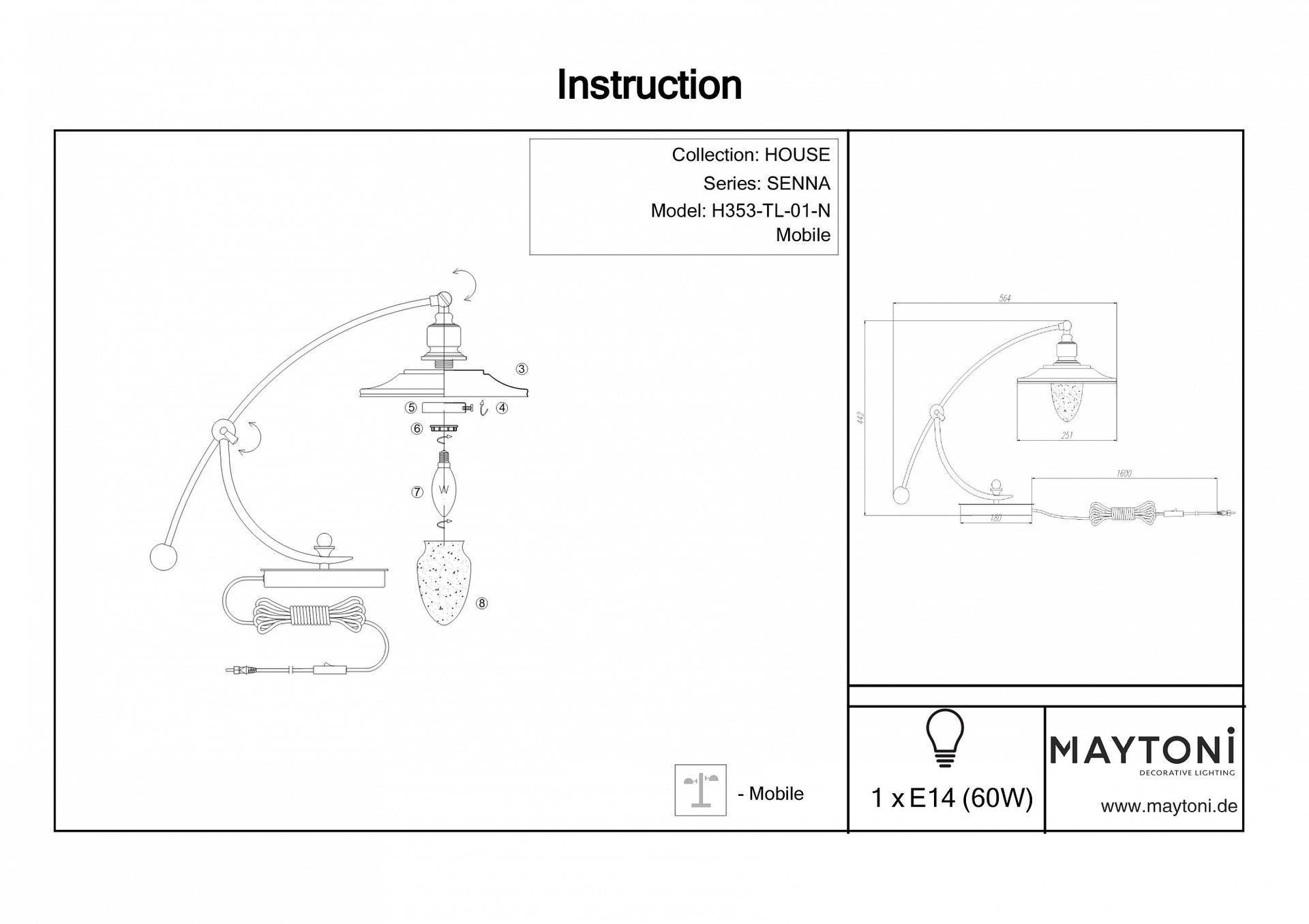 модель настольной лампы Senna H353-TL-01-N надежное приобретение. SvetONe предлагает два года гарантии на лампу H353-TL-01-N и 21 день на обмен или возврат.