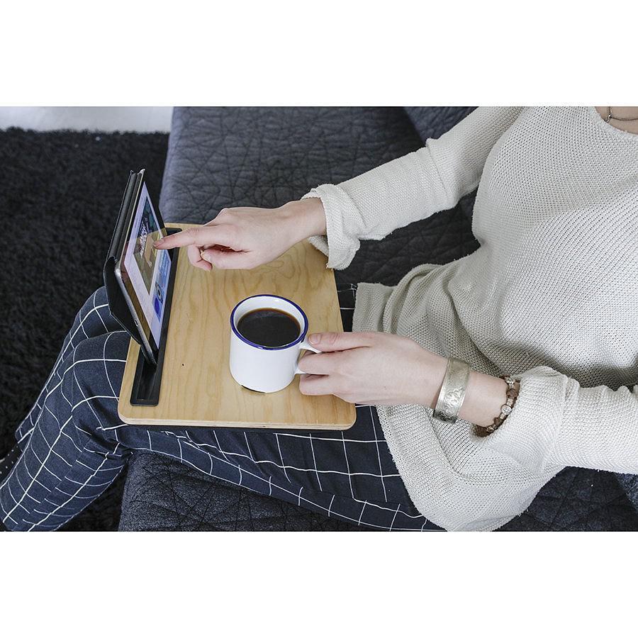 Столик отлично подойдет для работы или трапезы в постели.