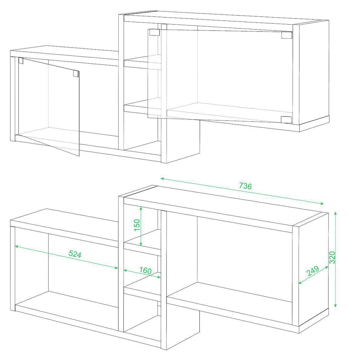 Полка состоит из 2х одинаковых модулей, которые комбинируются по цвету.