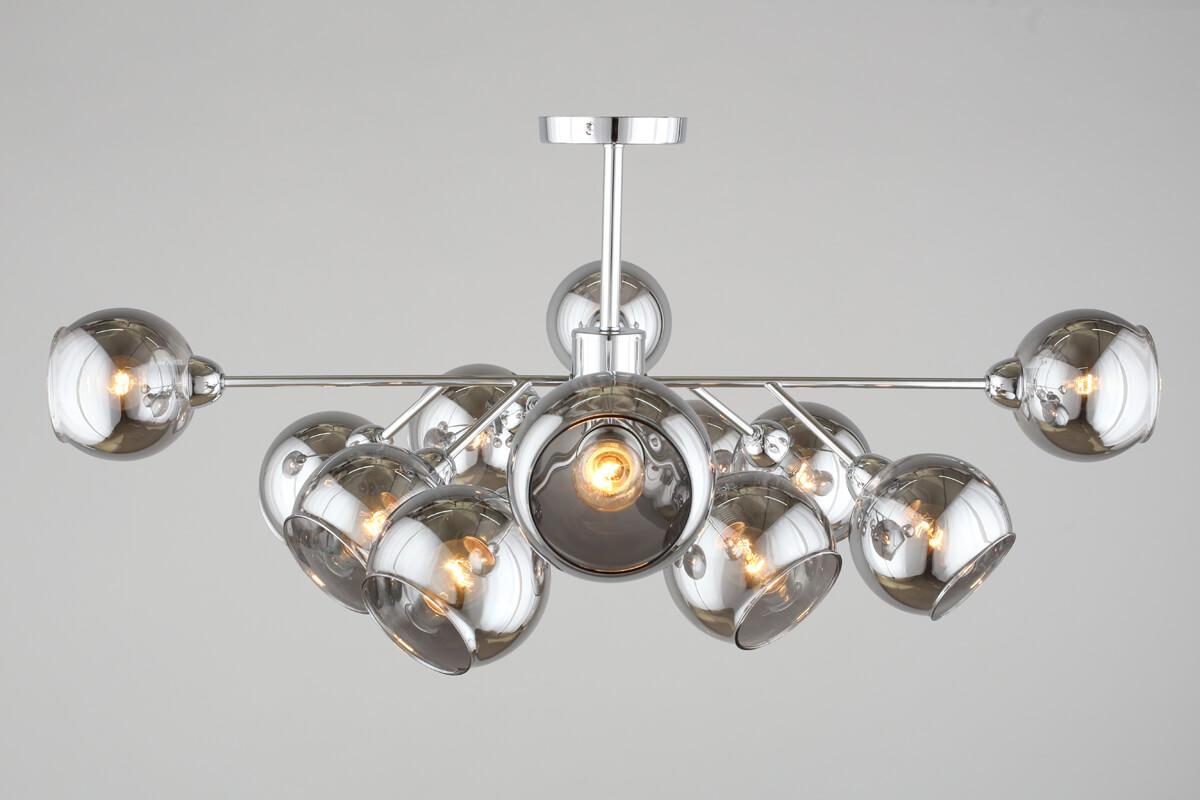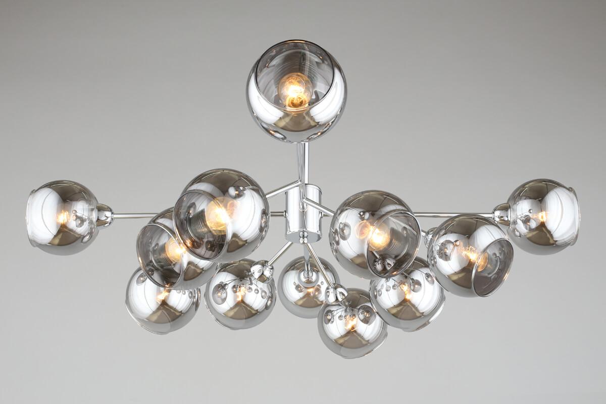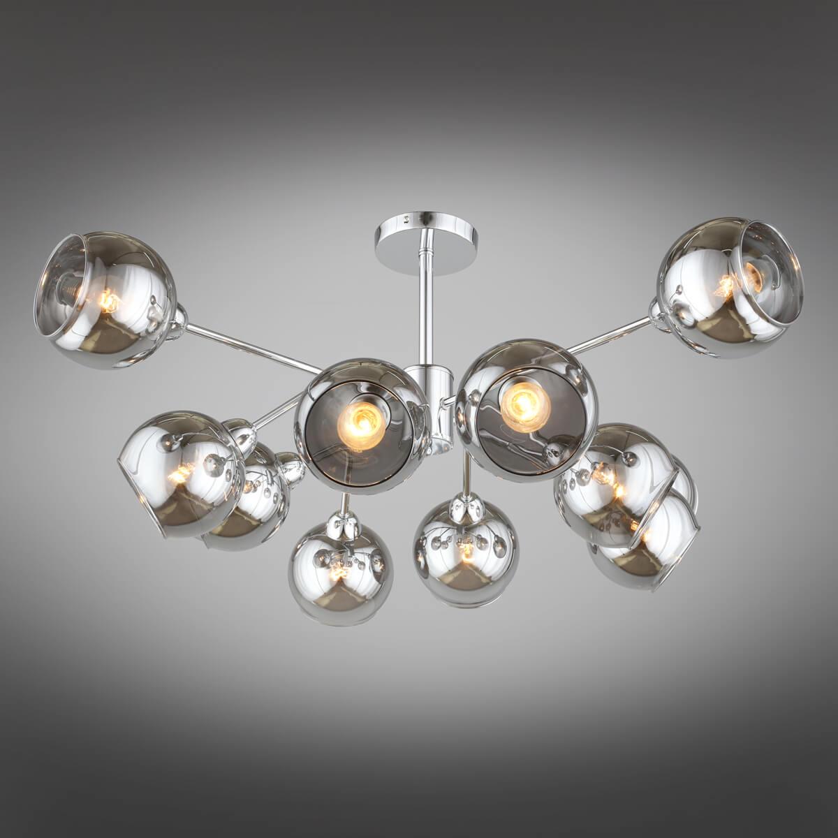 Прекрасная модель OML-94107-12 от китайской компании Omnilux относится к коллекции Ellera и отлично подойдет для установки на потолок в гостиной, оформленной в стиле лофт. Потолочная люстра Omnilux Ellera OML-94107-12 с плафонами в виде шаров осветит помещение площадью 26 кв. м. Производитель Omnilux рекомендует использовать для устройства лампы накаливания с цоколем E14 и мощностью 40 W. Прибор произведен с использованием материалов: стекло и металл и может использоваться для натяжного потолка. Основным цветом товара является дымчатый и серебристо-стальной. Торопитесь сделать заказ в интернет-магазине SvetONe.