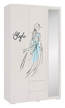 Шкаф 3-х дверный белый с рисунком, зеркальный