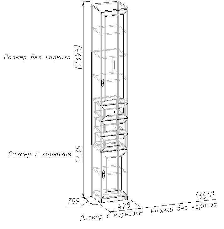2 дверцы, 3 ящика,4 полки