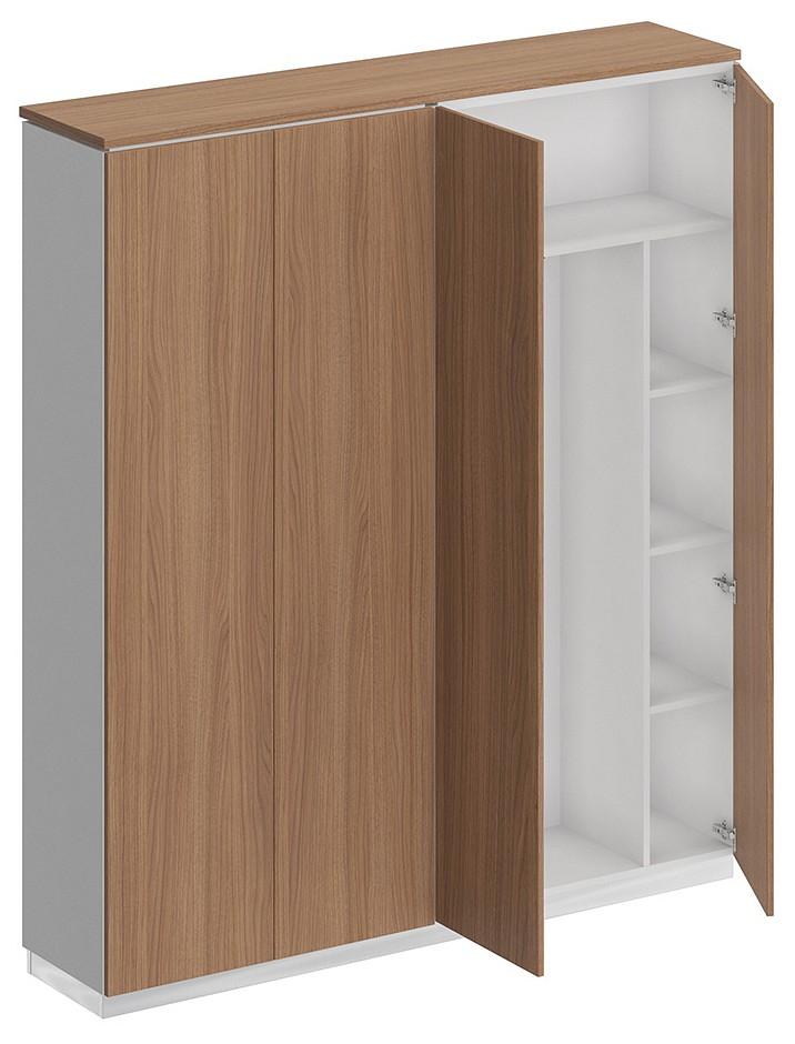 Шкаф состоит из закрытого шкафа для документов и шкафа для одежды с дополнением под общим топом под общим топом и цоколя на 2 шкафа.