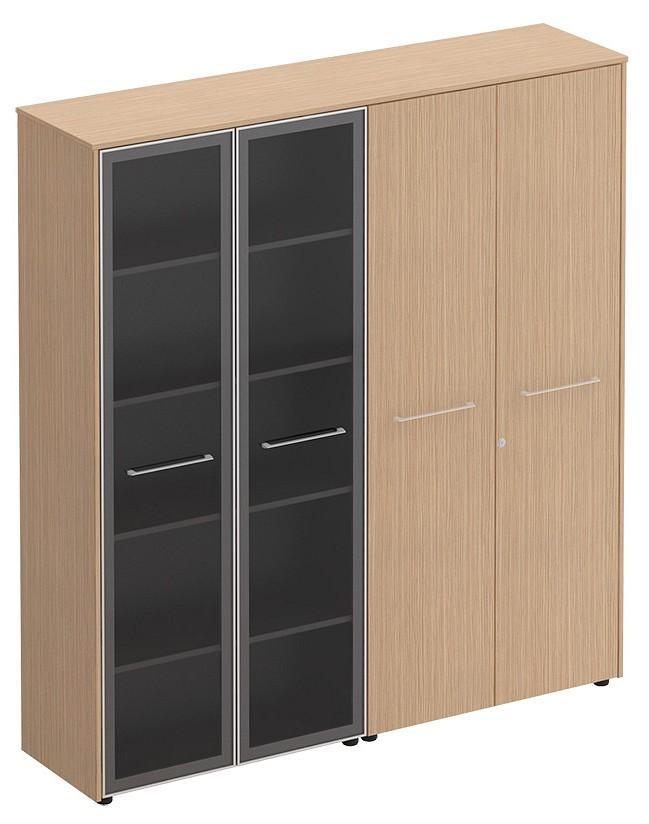 Шкаф комбинированный является стенкой, состоящей из шкафа со стеклом для документов и шкафом для одежды под общим топом.