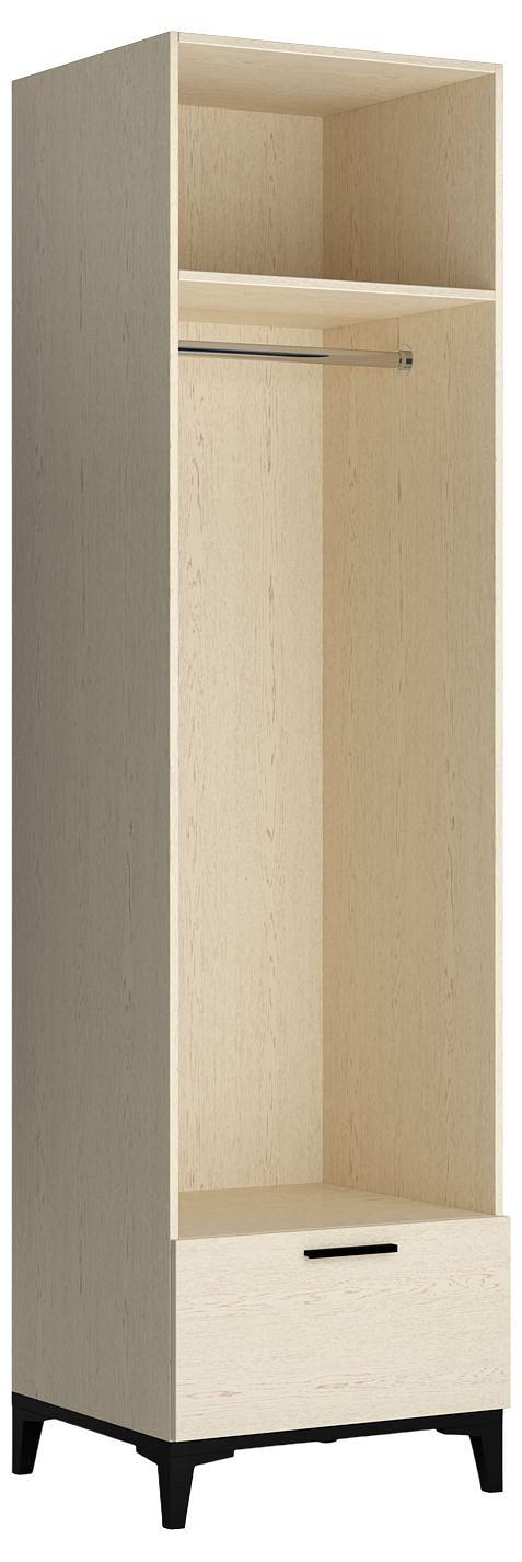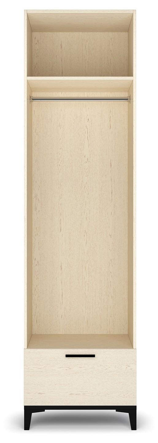 Шкаф платяной из коллекции Милан сочетает в себе строгую геометрию форм, высокие ножки и контрастные детали. Материал изготовления корпуса высококачественное ЛДСП дуб леонардо, дно толщиной 25 мм с кромкой черного цвета смотрится с ножками как единое основание. Металлическая ручка черного цвета украшает фасады изделия. Высококачественные материалы и фурнитура, применяемые в производстве обеспечивают безопасность и надёжность изделия. ЛДСП класса эмиссии Е1 гарантирует отсутствие вредных испарений. Петли фасада имеют доводчик. Ящик оснащен современными направляющими скрытого типа.