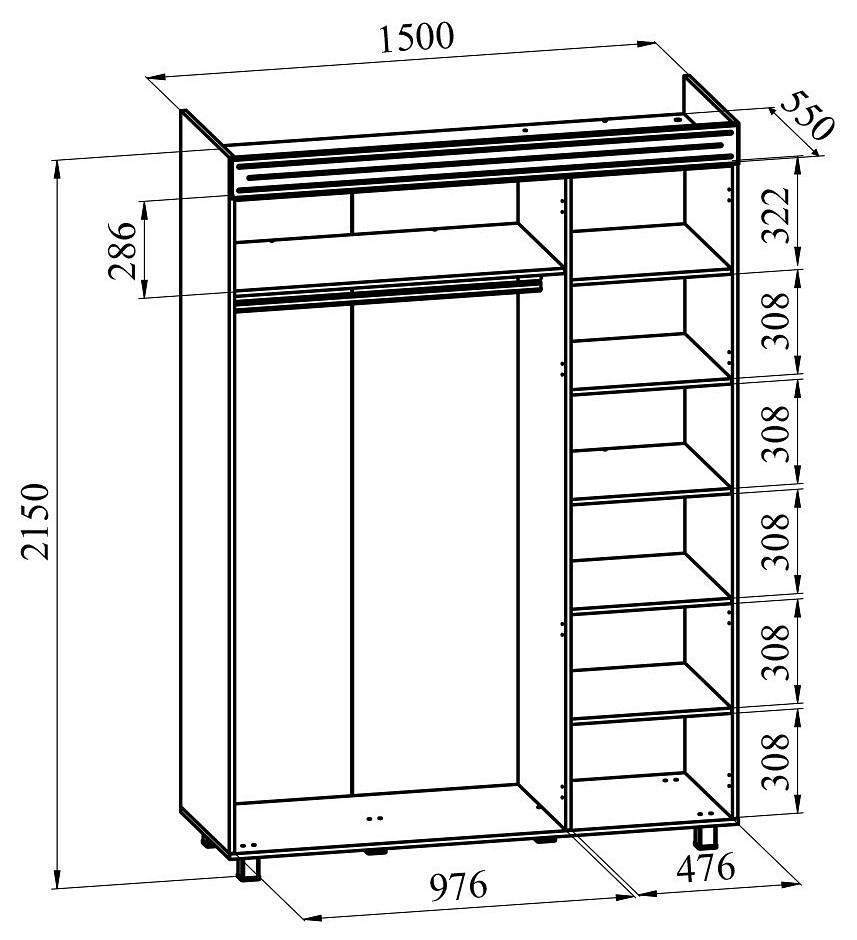Шкаф платяной Элизабет ЭМ-18 создан фабрикой Компасс-мебель (Россия) и входит в серию Элизабет. Зеркальный, матовый фасад изготовлен из практичных и надежных материалов (МДФ, стекло) и прекрасно дополняет матовый корпус шкафа. Шкаф платяной Элизабет ЭМ-18 наиболее актуален для таких зон, как гостиная, кабинет, прихожая, спальня и имеет следующие габариты: 1500 мм. в ширину, 2150 мм. в высоту, глубина шкафа составляет 550 мм. В комплектацию данной модели входит 1 штанга для вешалок, 3 дверцы, 6 полок, входящие в комплект, а срок изготовления обычно не превышает 3 дней. На изделие предоставляется гарантия 12 месяцев. Купить шкаф платяной элизабет эм-18 можно в интернет-магазине Mebelion.ru за 34951 руб.