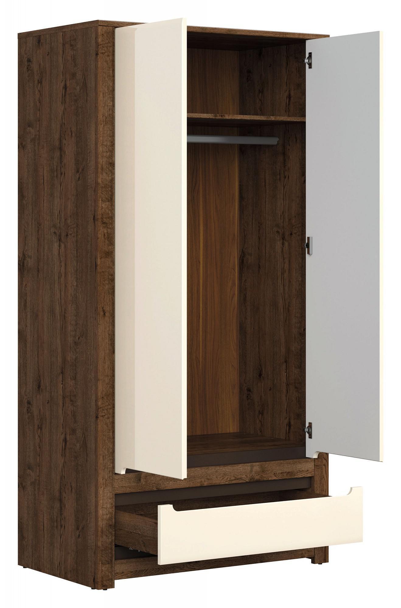Ищете долговечную и изысканную мебель для своего интерьера? Шкаф платяной Ruso SZF2D1S из коллекции «Ruso» – то, что вам нужно. в следующей комплектации: 1 полка, 1 штанга для вешалок, 1 ящик, 2 дверцы. МДФ, из которого выполнен фасад, имеет качественное верхнее покрытие (оттенок «жемчужный глянец»), подходящее для размещения в помещениях с высокой проходимостью, а комфортные размеры изделия позволят выигрышно использовать полезное пространство (шкаф шириной 1045 мм и глубиной 605 мм, при этом вы сможете разместить в нем все необходимое благодаря внушительной высоте, равной 2045 мм).